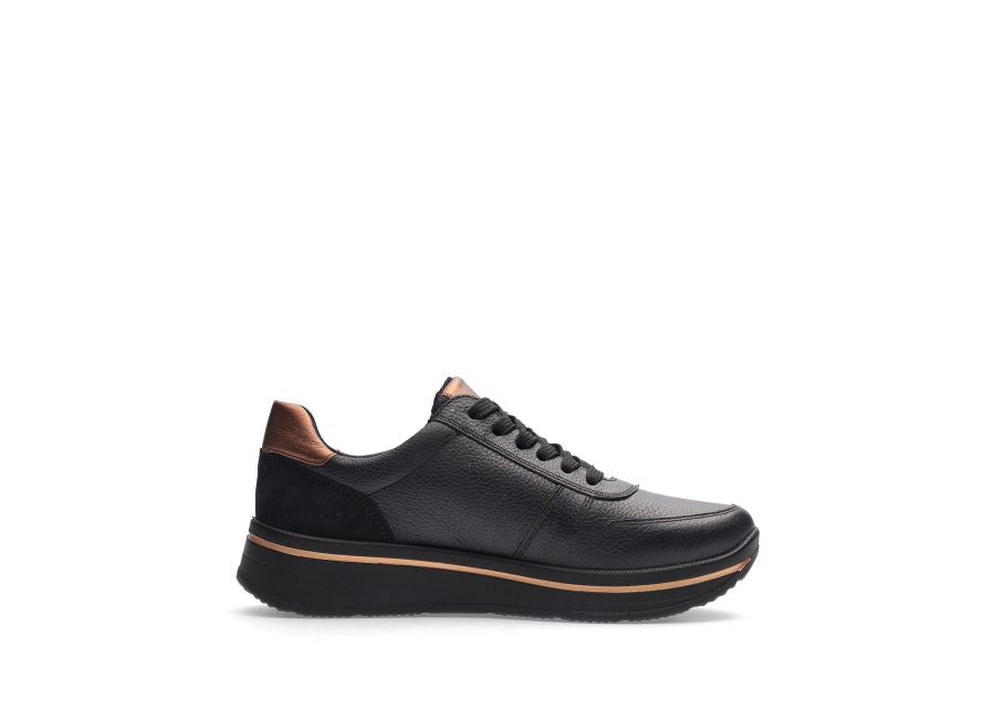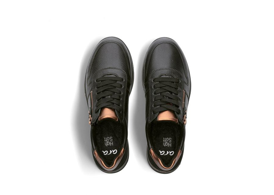Ara | Sapporo Wide H Fit Lace & Zip Trainers in Black & Bronze | 12.27540.01