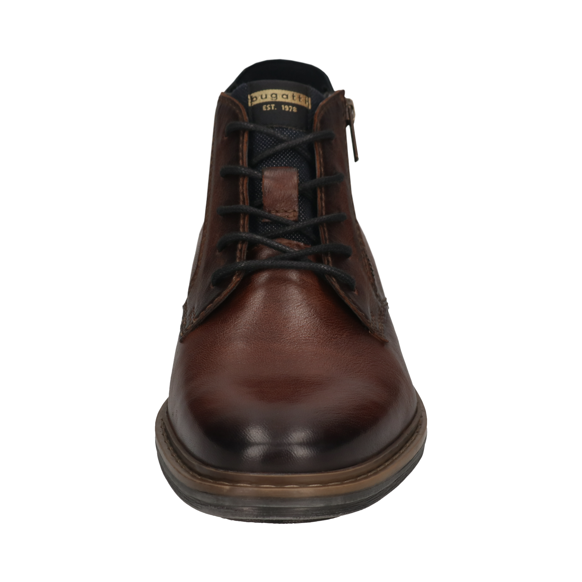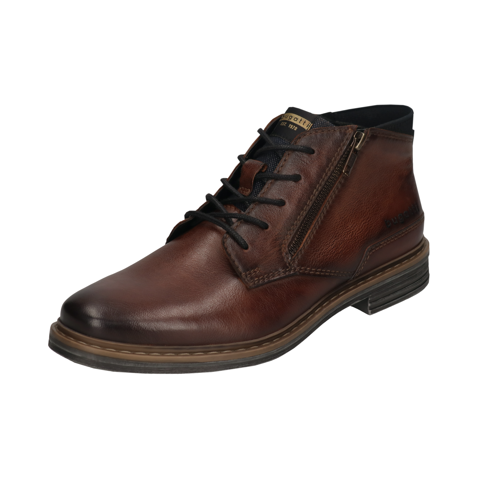 Bugatti | Mid Brown Lace & Zip Boot with Navy Strip at Heel | 311-AOC30-3100 6400