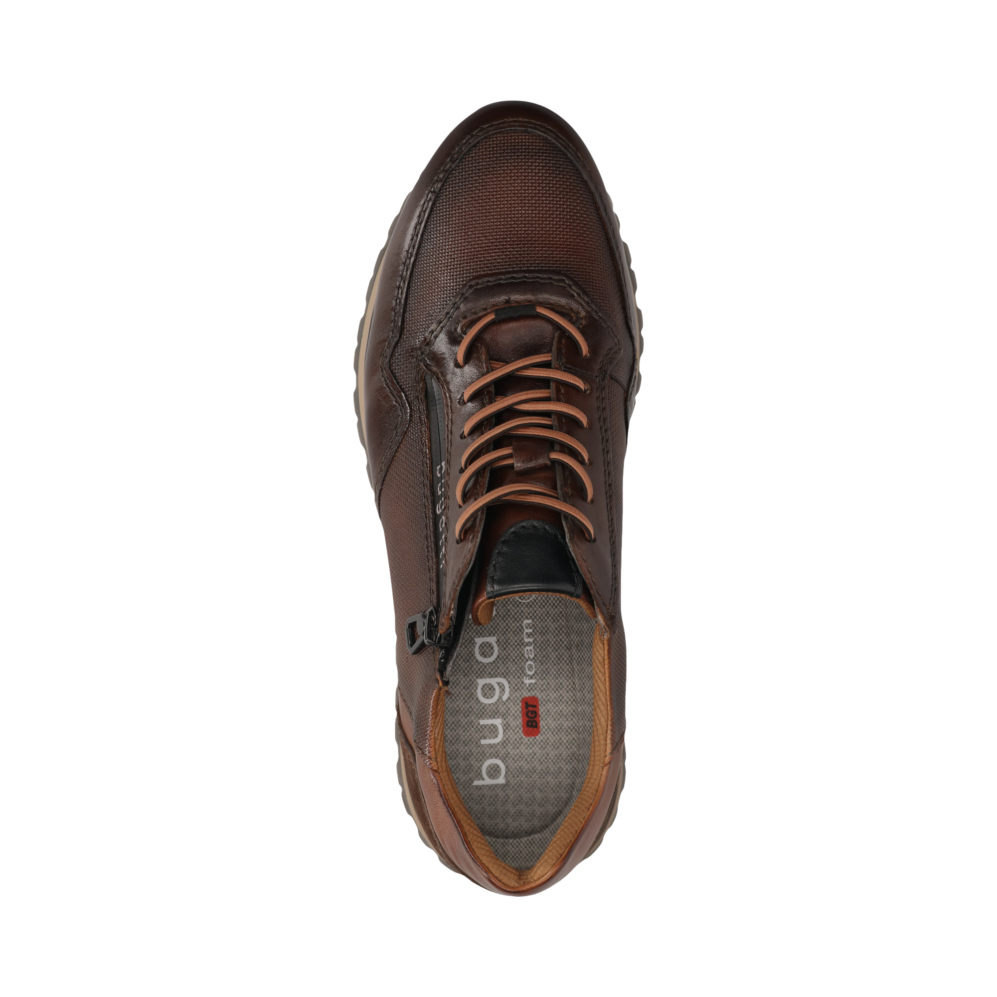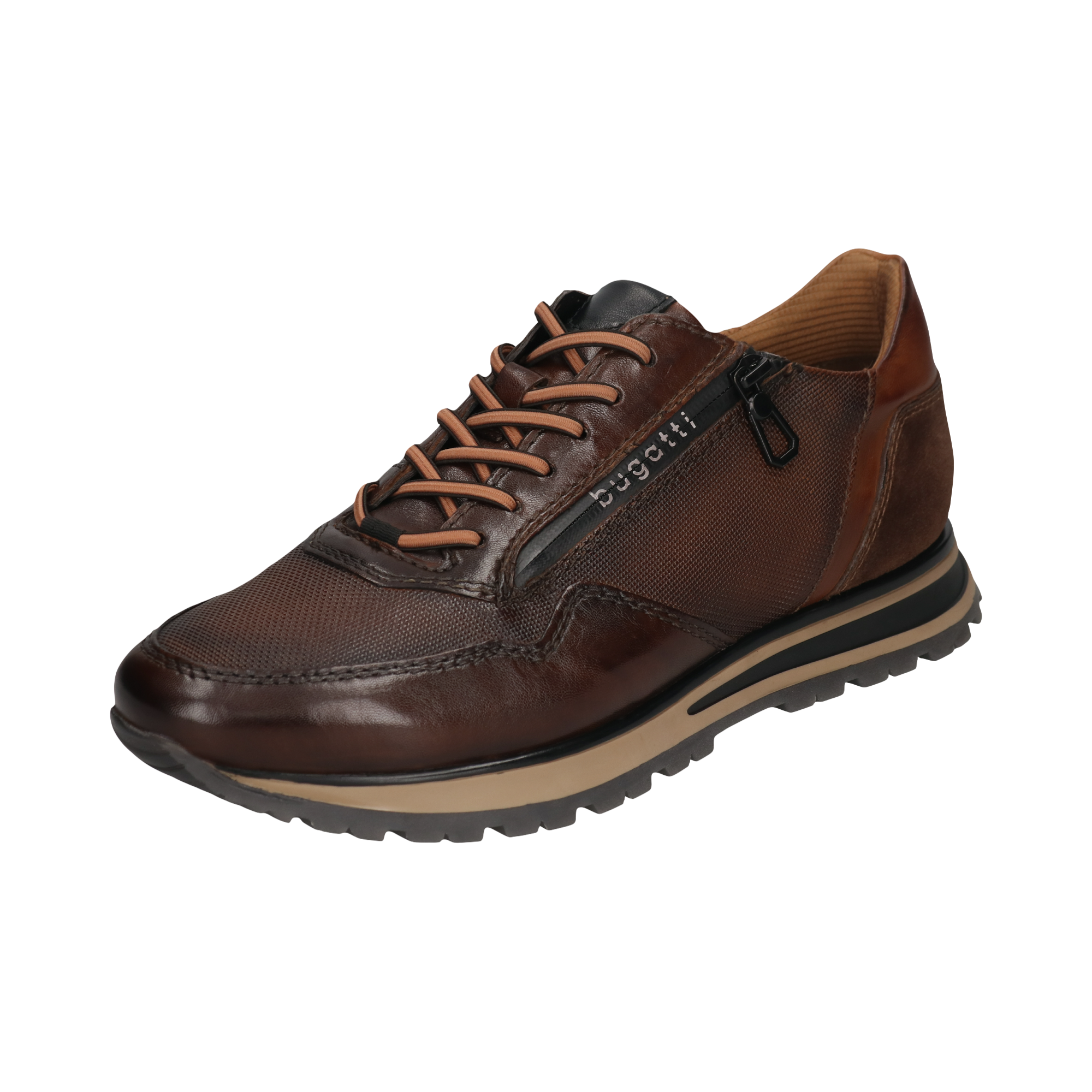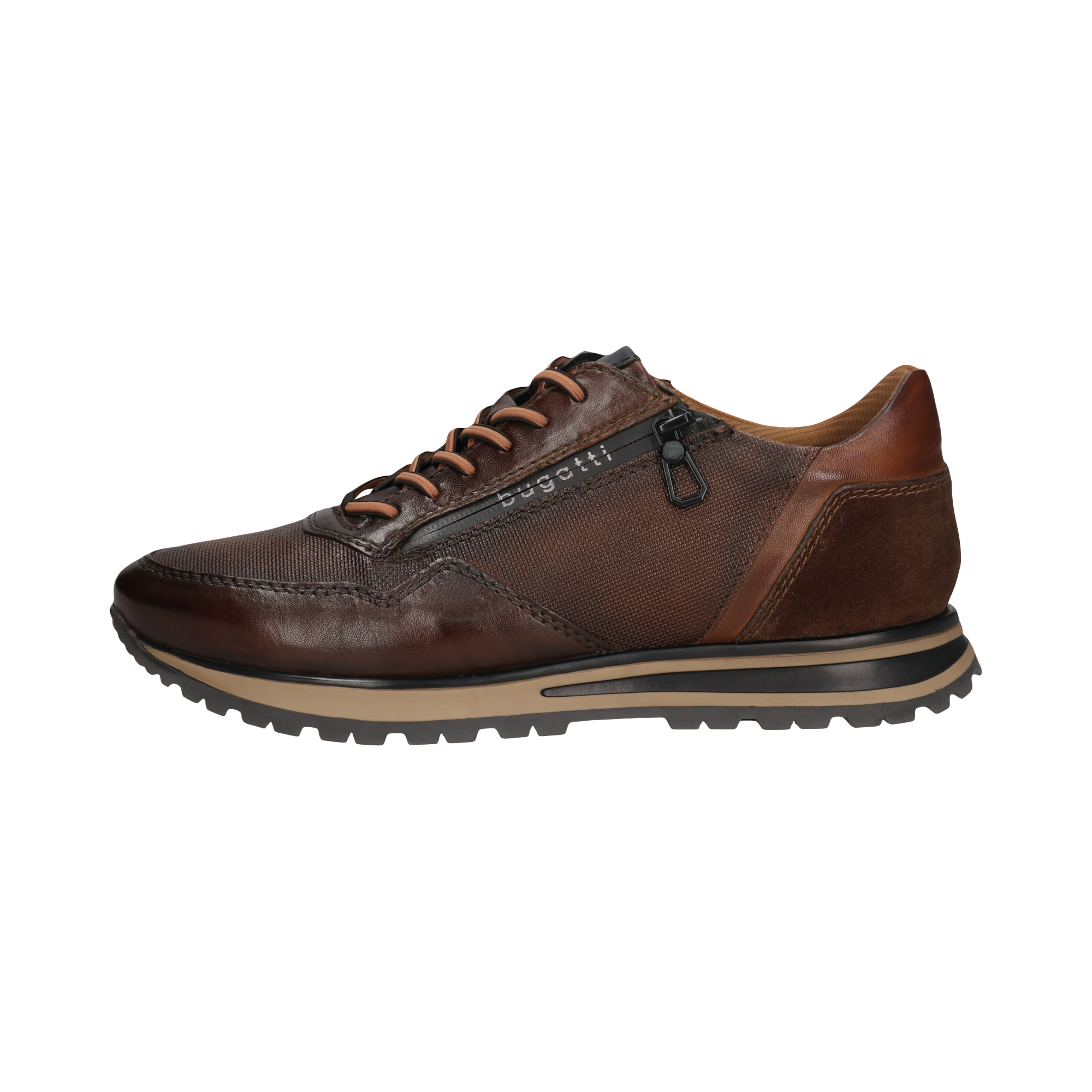 Bugatti | Lace & Zip Brown Leather Casual Shoe with Contrast Suede Heel | 331-AG809-4100 6000
