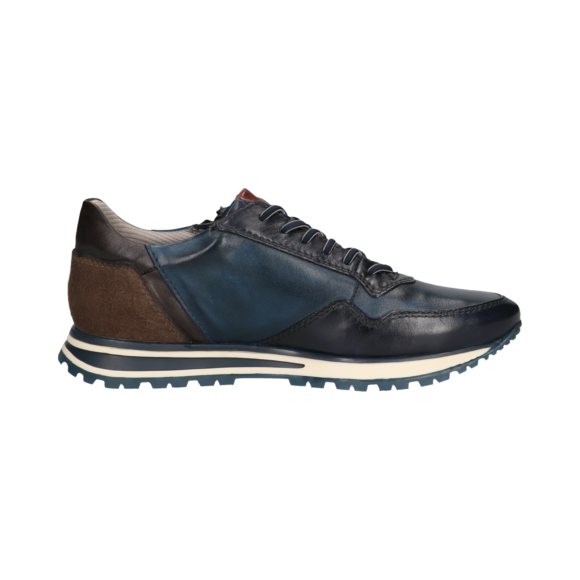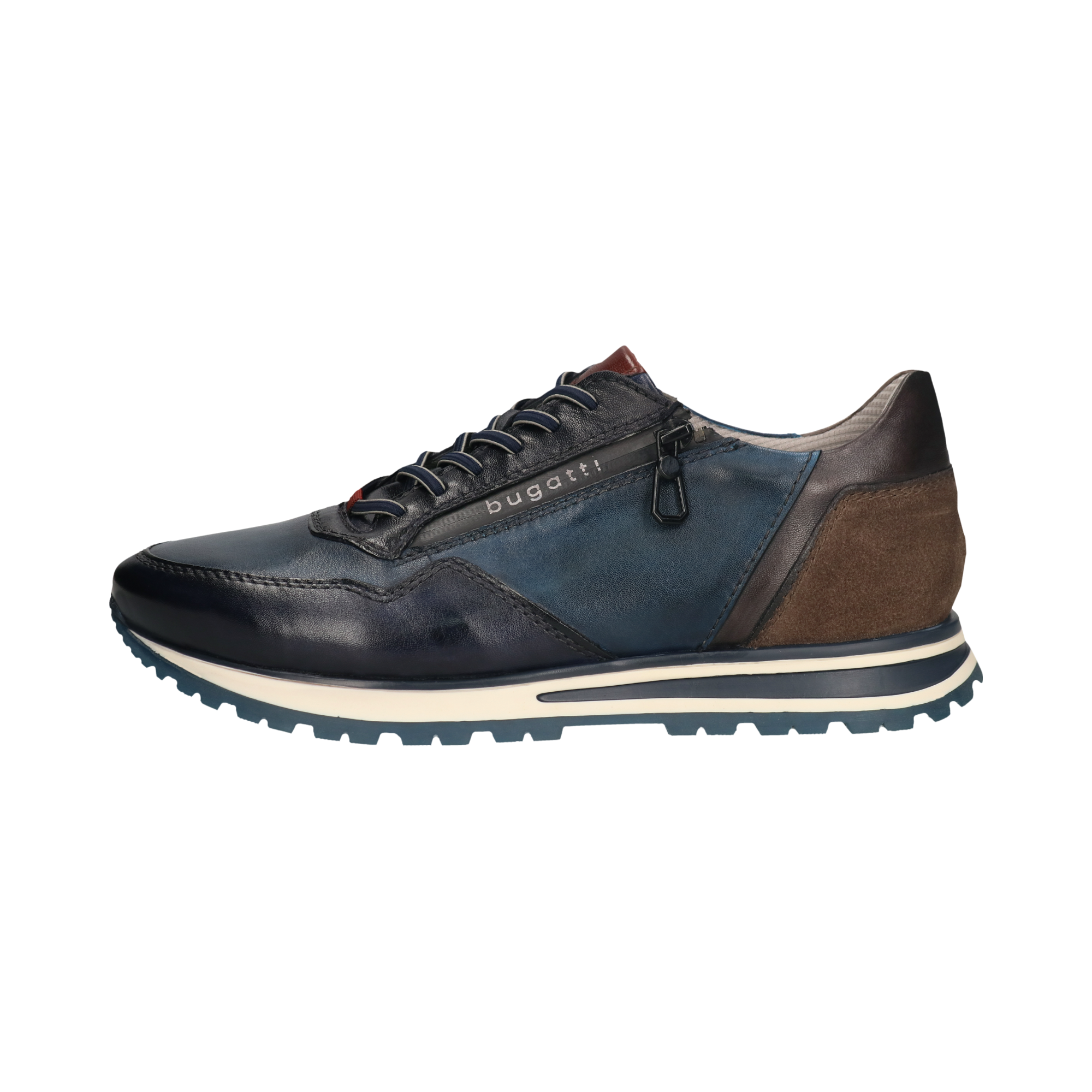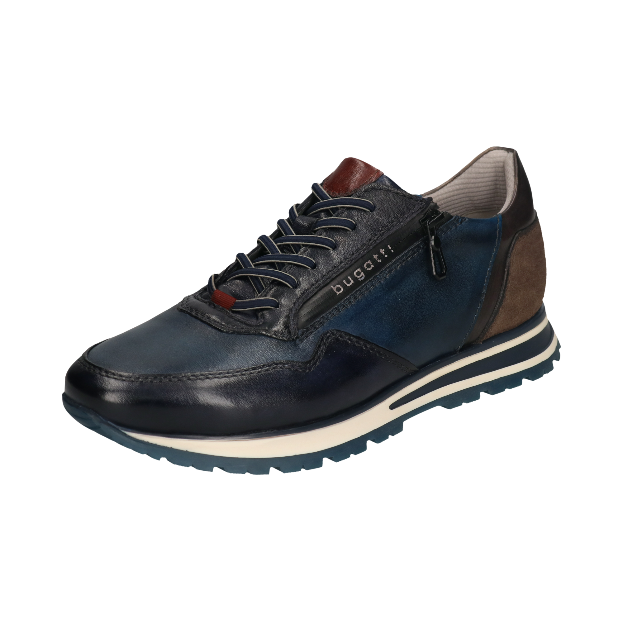 Bugatti | Blue & Navy Two Tone Leather Shoe with Contrast Suede Cognac Heel | 331-AG809-4141 4140