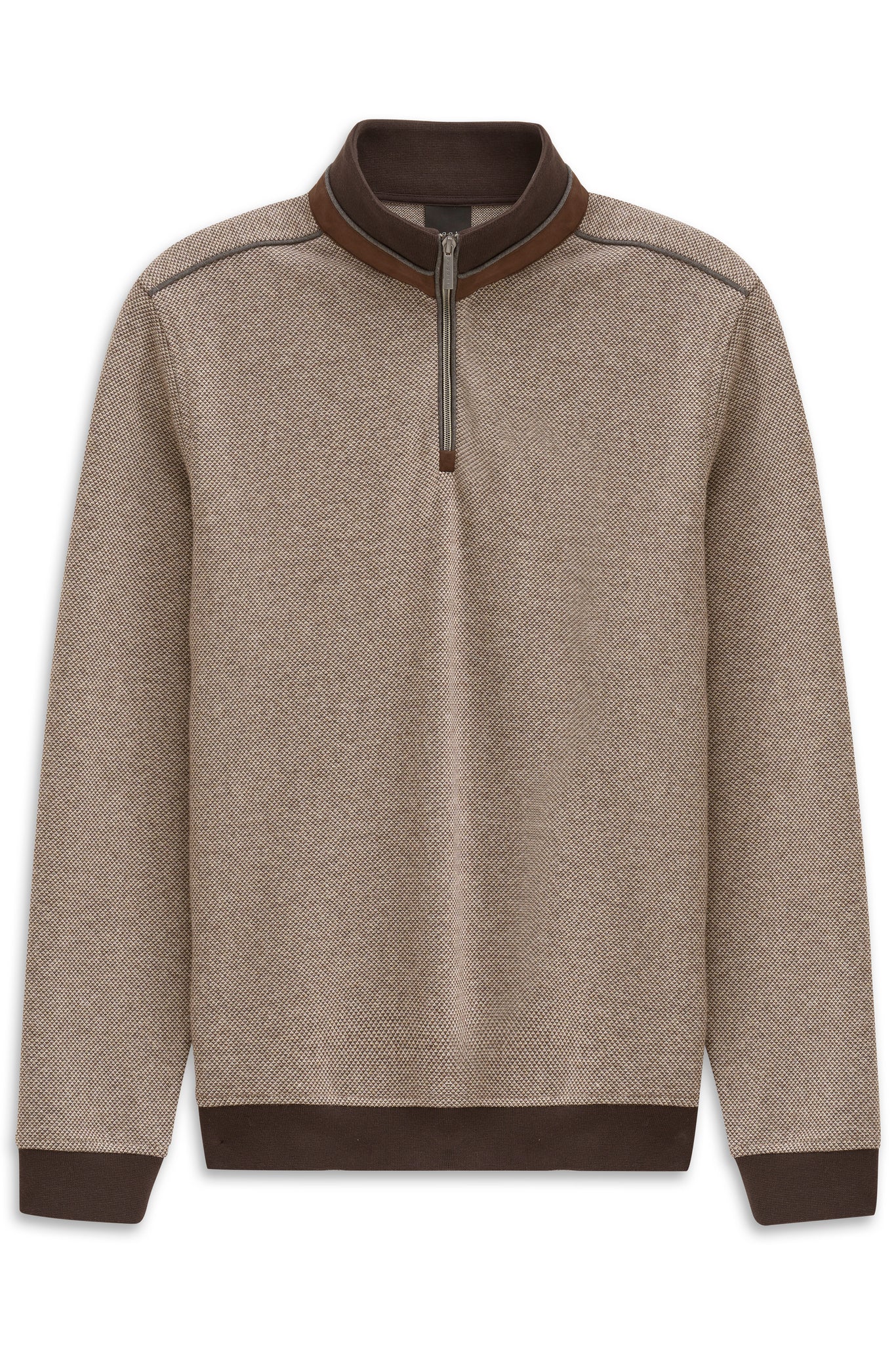 Bugatti | 1/2 Zip Sweatshirt in Light Brown with Brown Trim | 8550 85060D 90