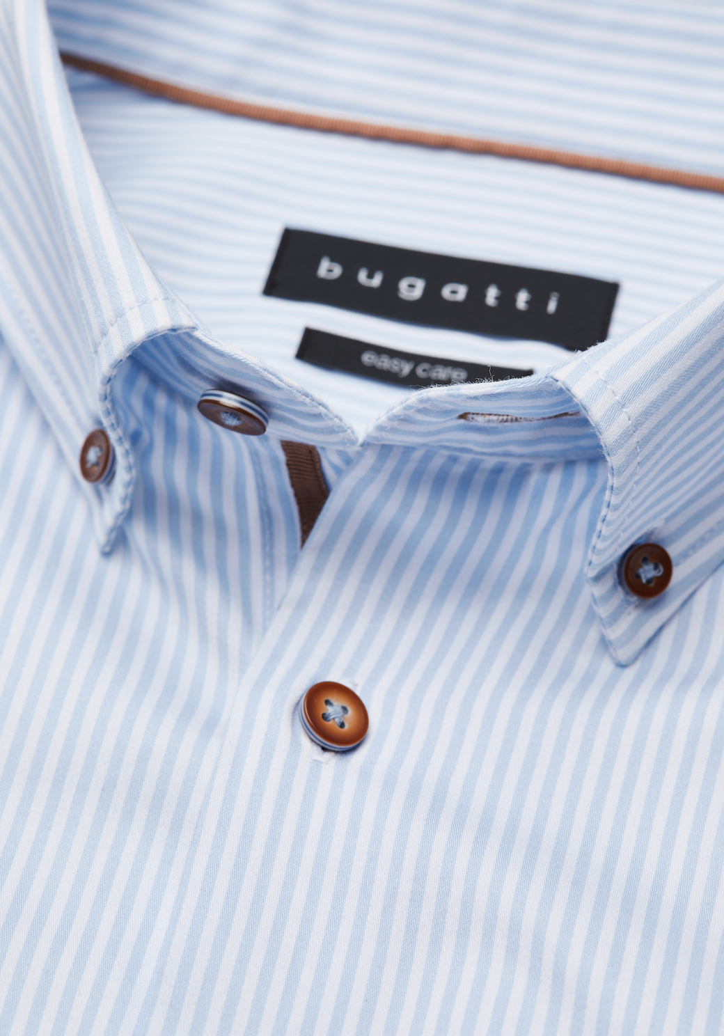 Bugatti | Striped Button Down Blue Shirt with Brown Buttons | 9350 78527c 320