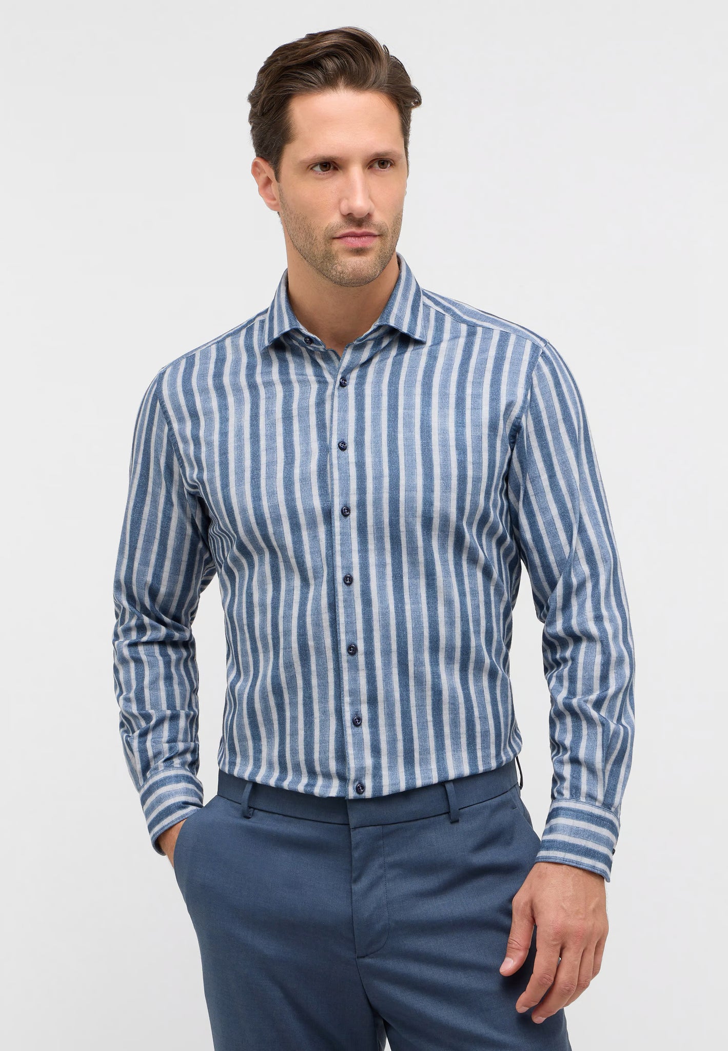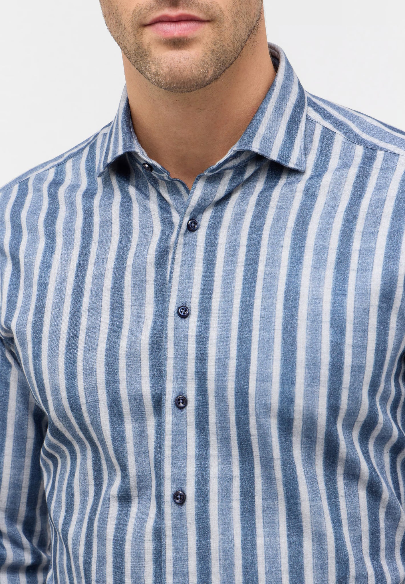 Eterna | Soft Cotton Striped Modern Regular Fit Shirt in Blue | 1159 xs87 18
