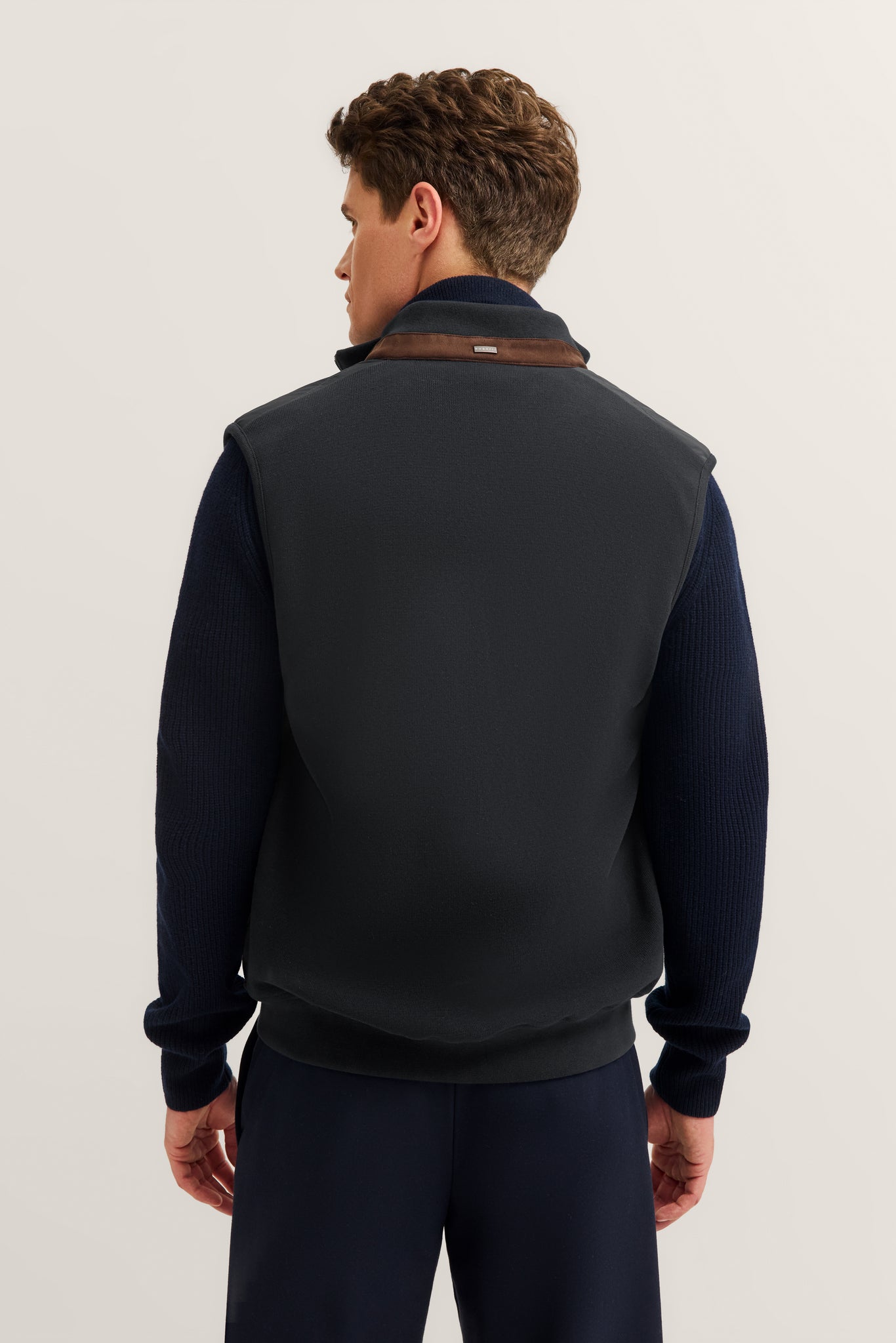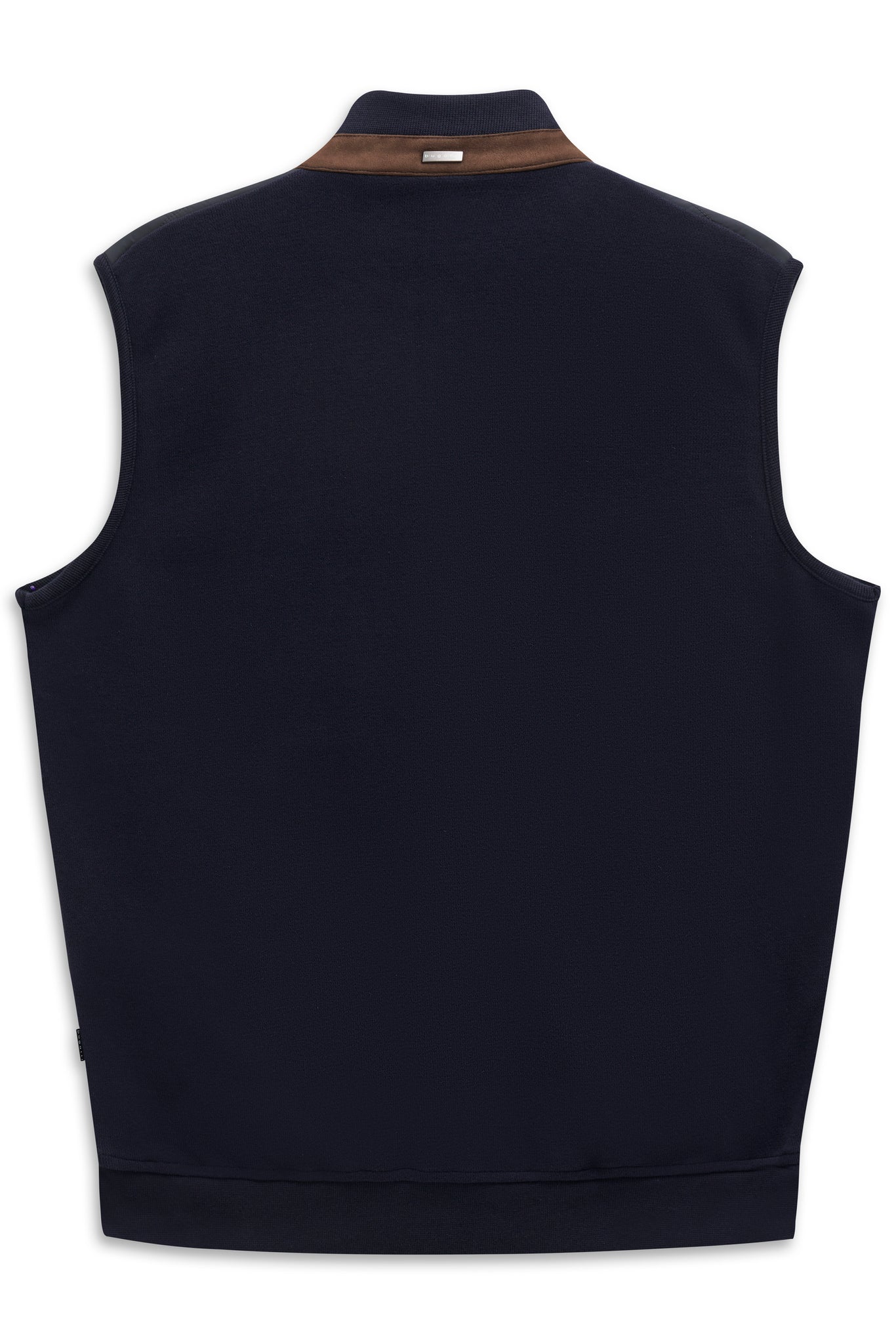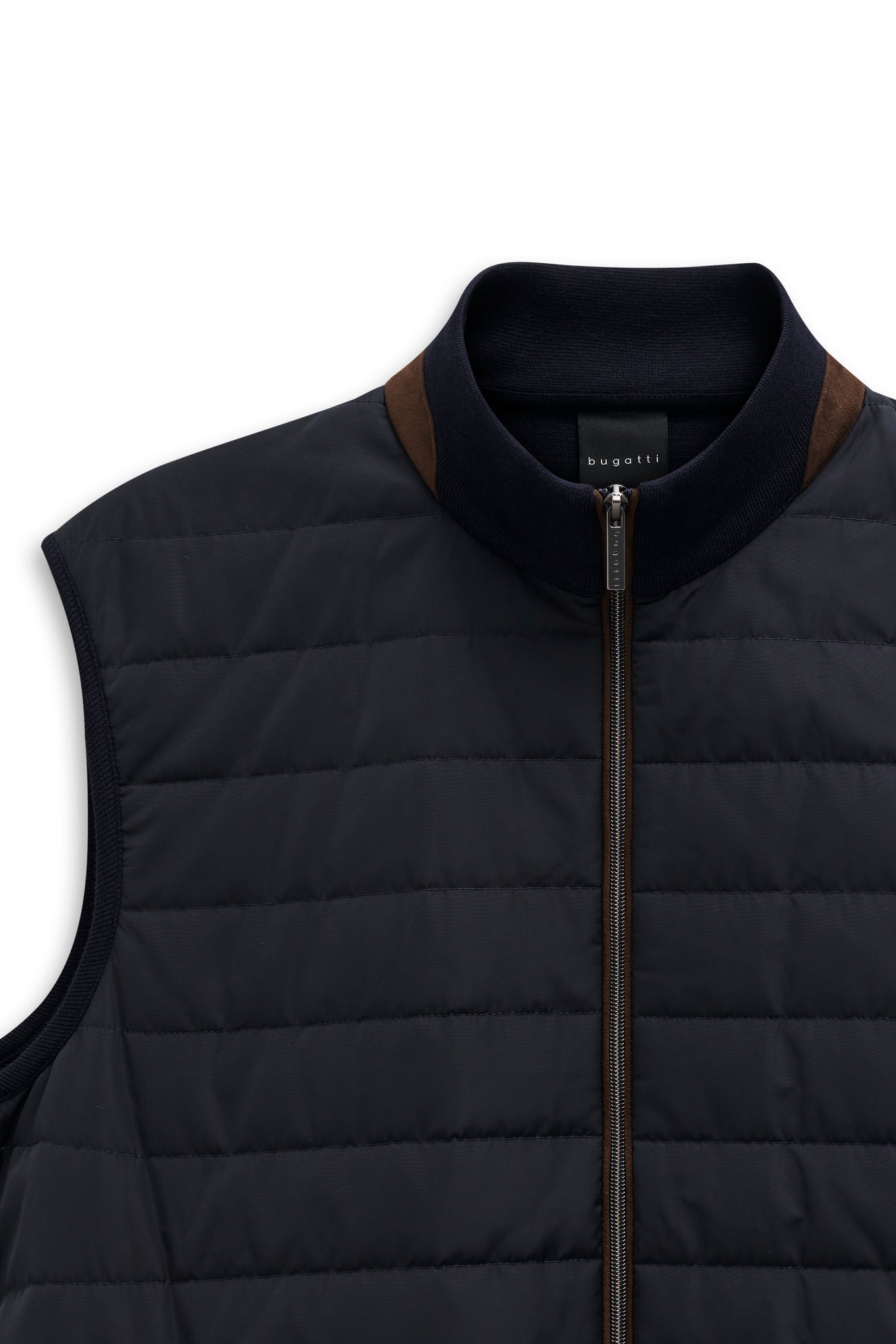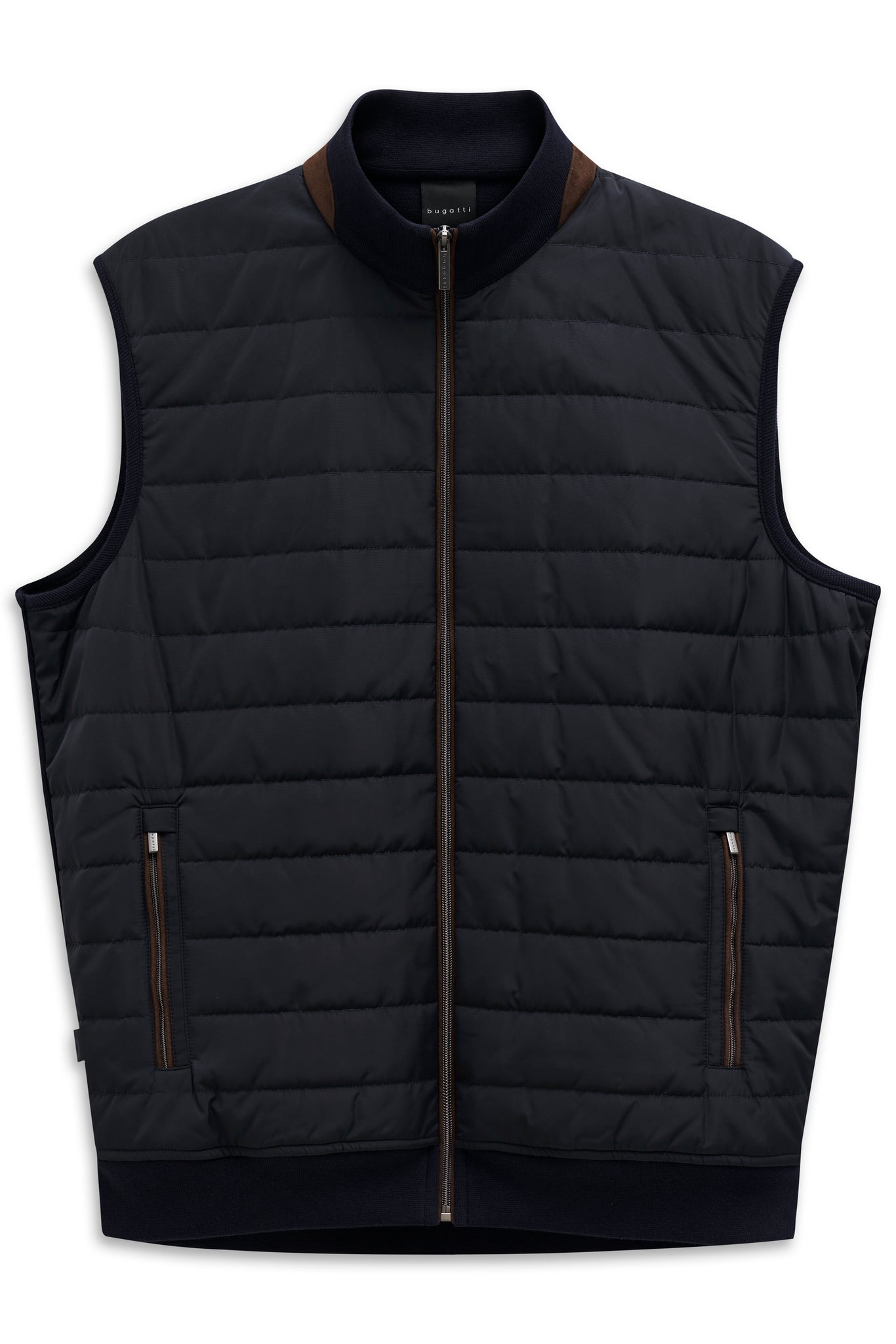 Bugatti | Lightweight Gilet with Knitted Back in Navy with Brown Trim | 8800 85051d 390