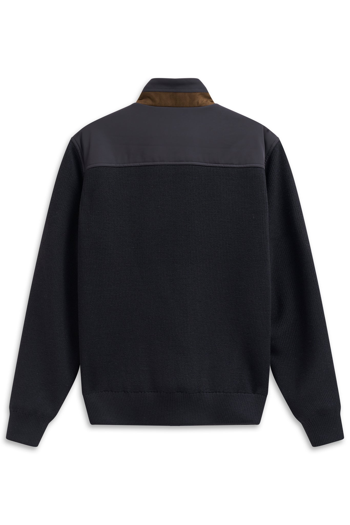 Bugatti | Hybrid Wool Mix Jacket in Navy with Knitted Sleeves & Back | 7600 85556d 390