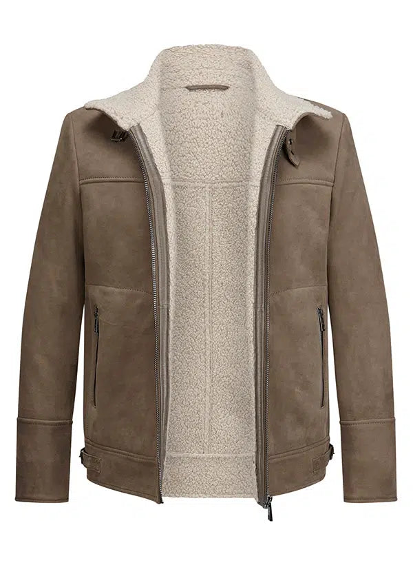Milestone | Straight Cut Goatskin Suede Leather Jacket in Beige with Faux Fur Inside | Camino 73