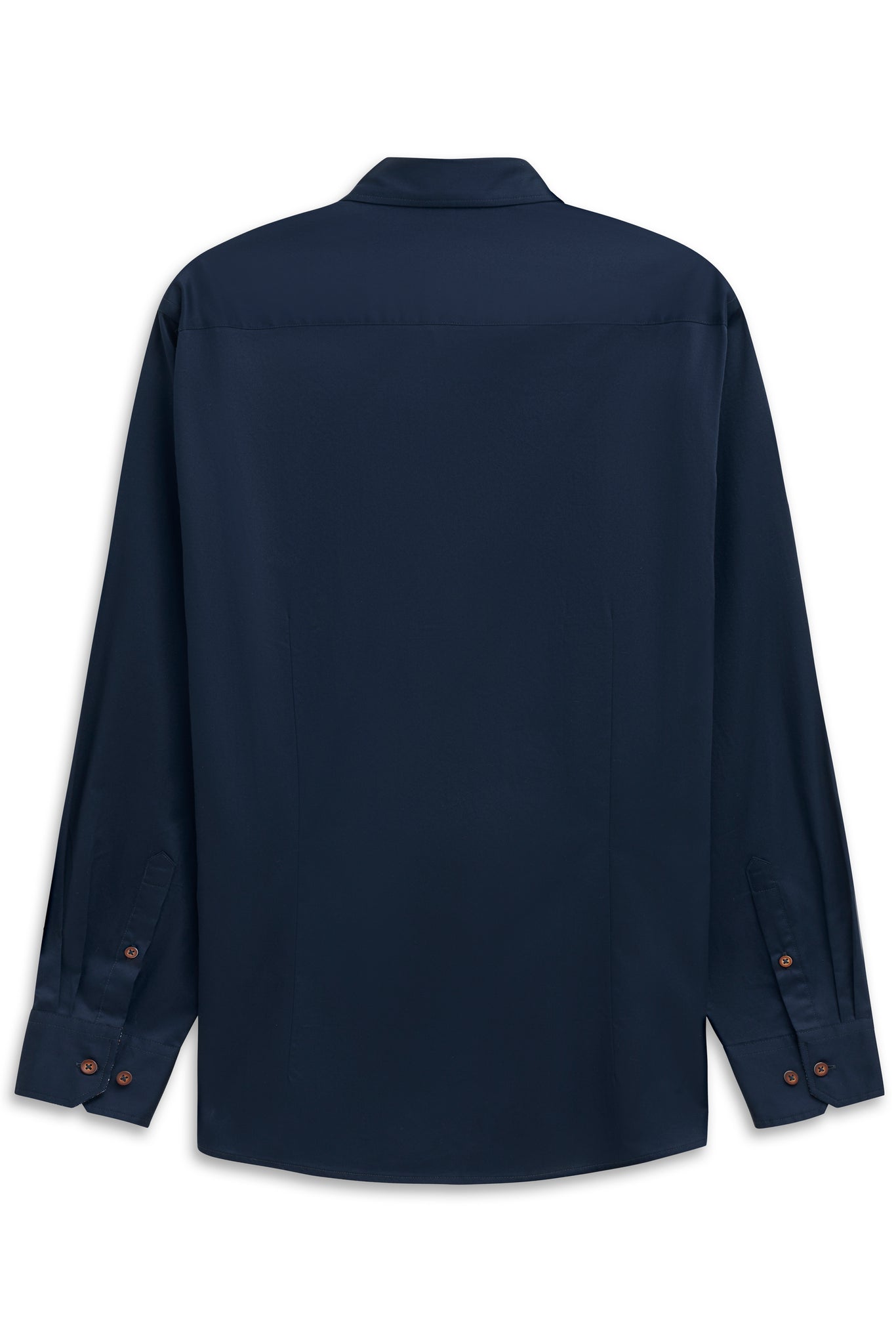 Bugatti | Regular Fit Navy Cotton Shirt with Brown Buttons & Trim | 9750 88507d 390