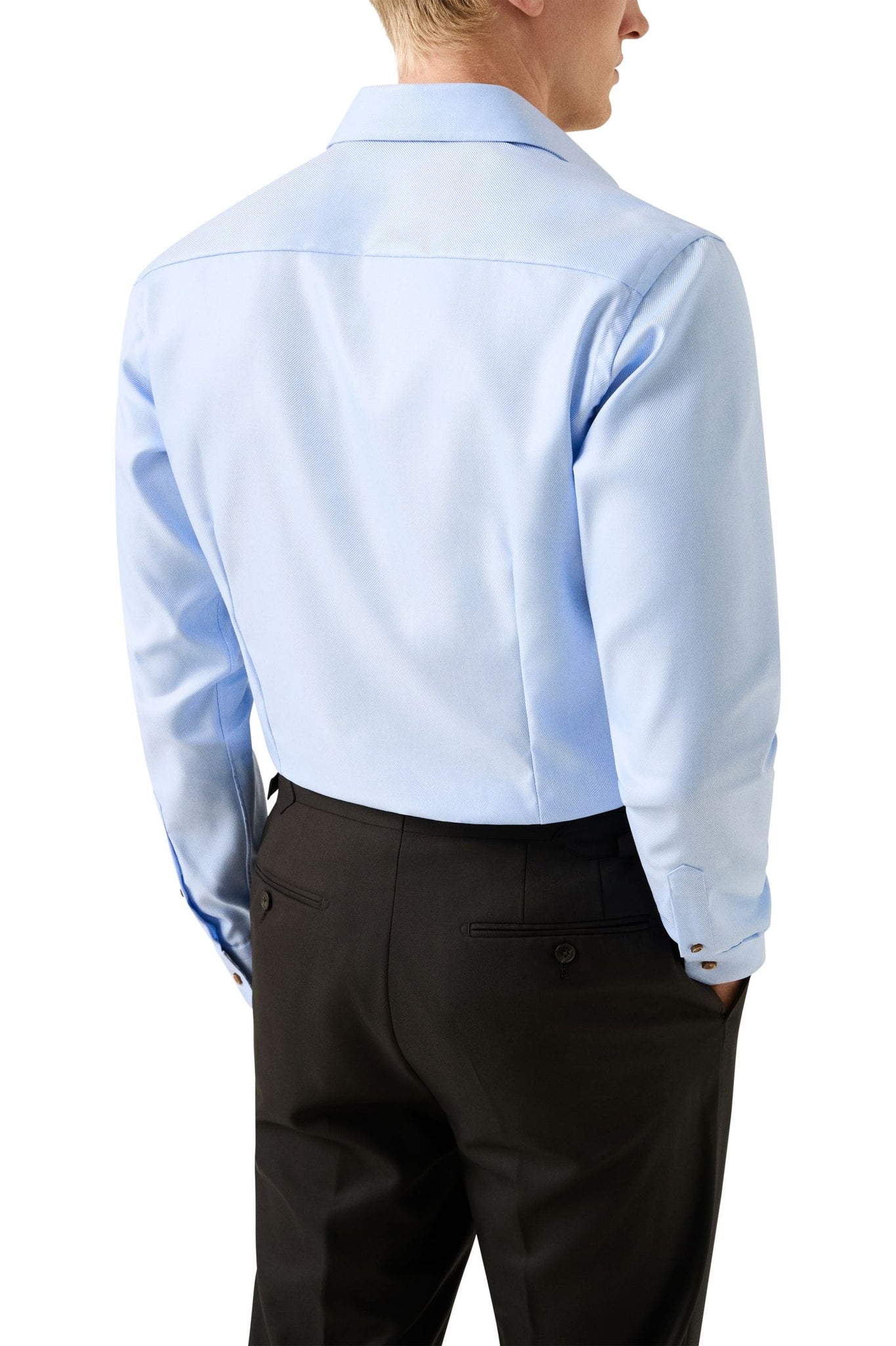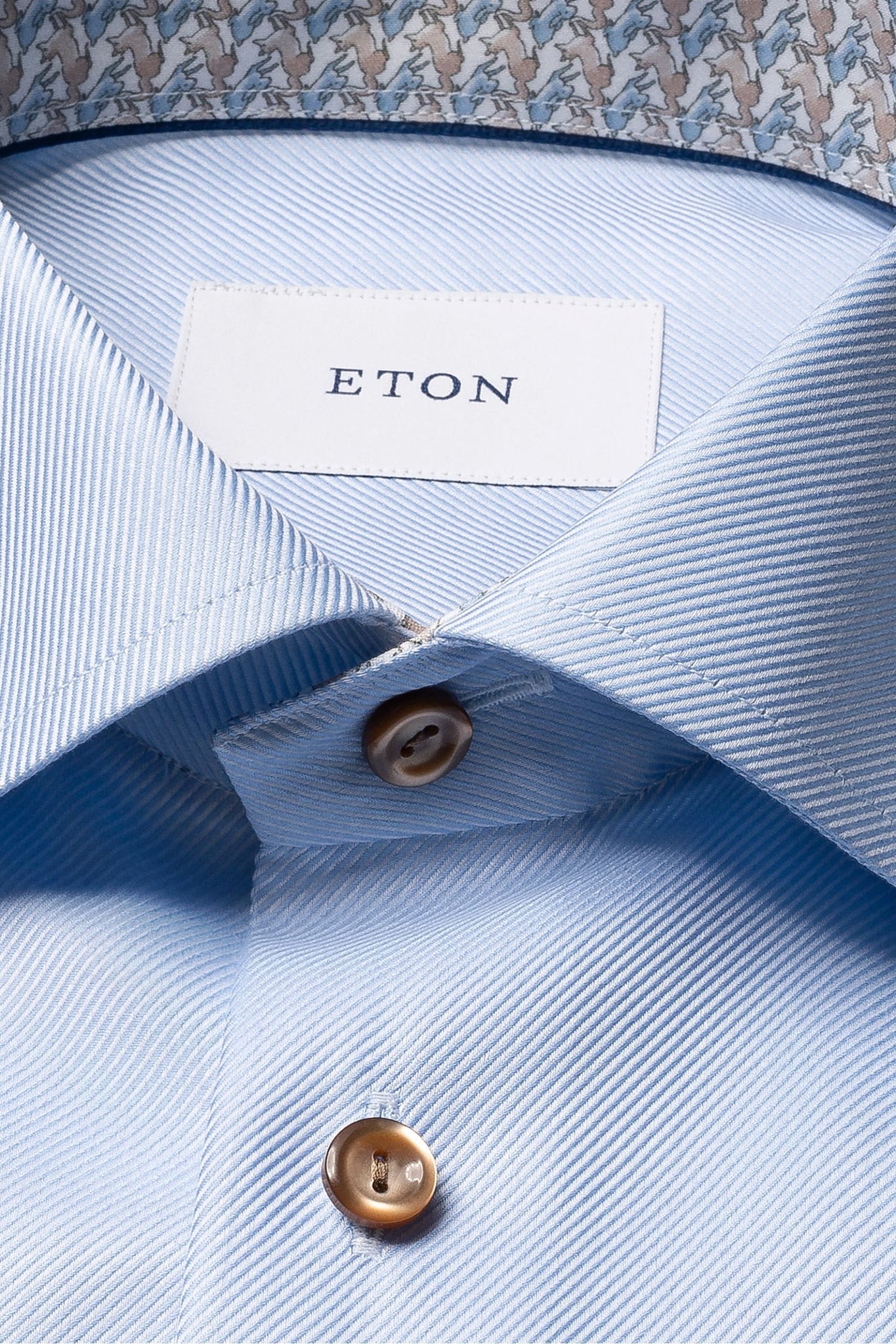 Eton | Twill Fabric Cotton Shirt in Blue with Brown Buttons in Contemporary Regular Fit | 1000 14542 22