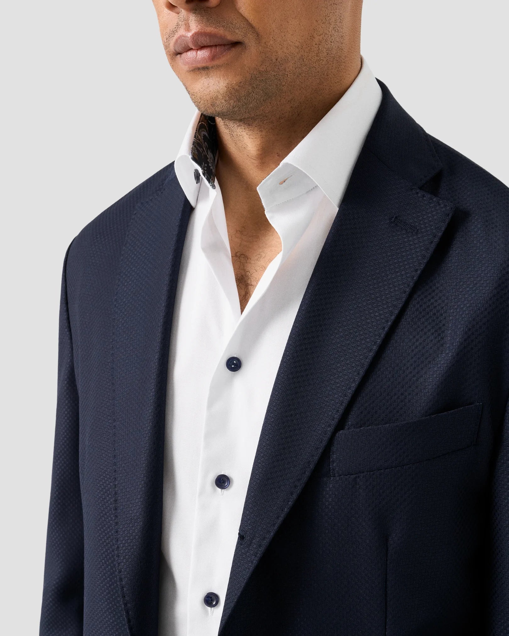 Eton | Signature Twill Cotton Shirt in Contemporary Regular Fit in White with Navy Buttons | 1000 14551 00