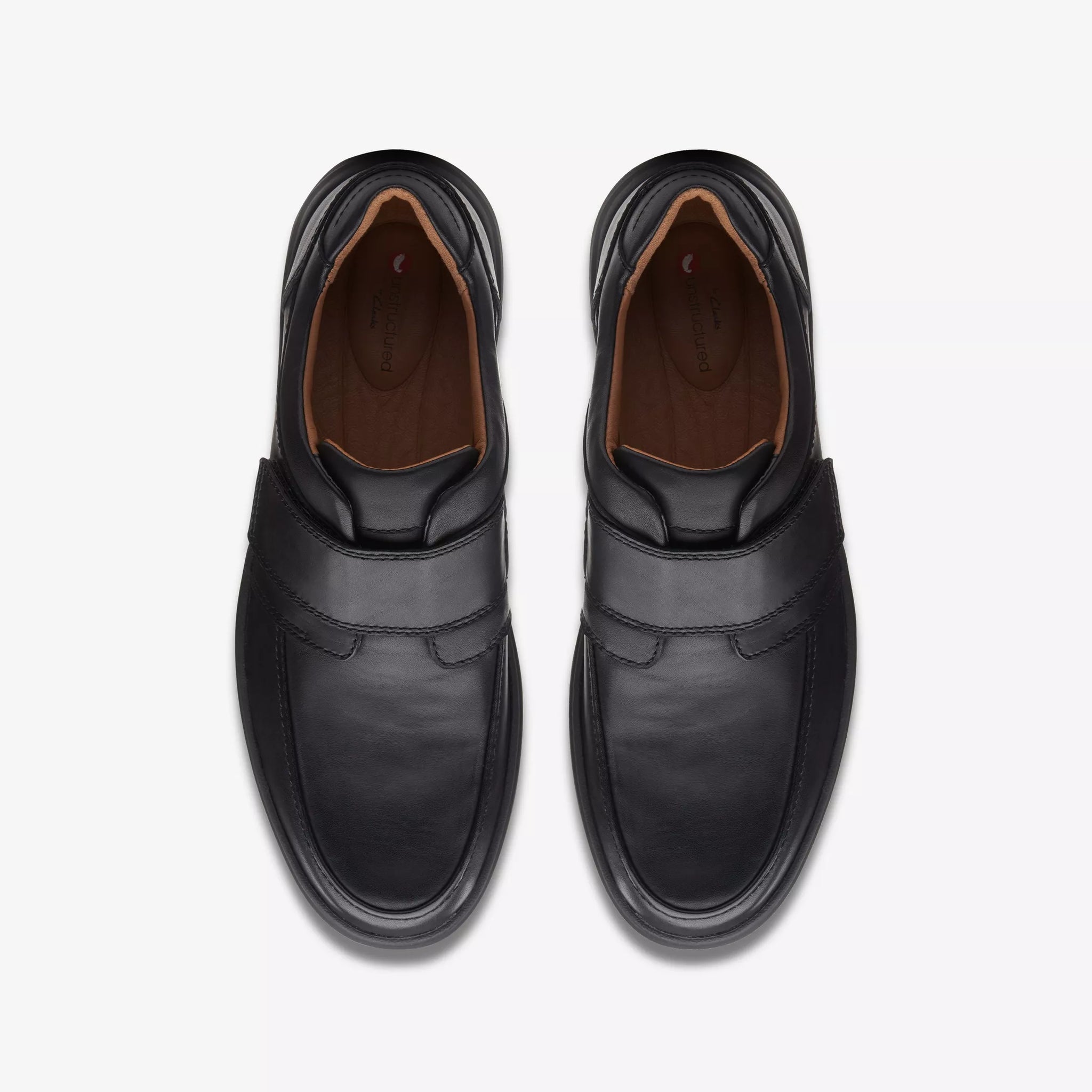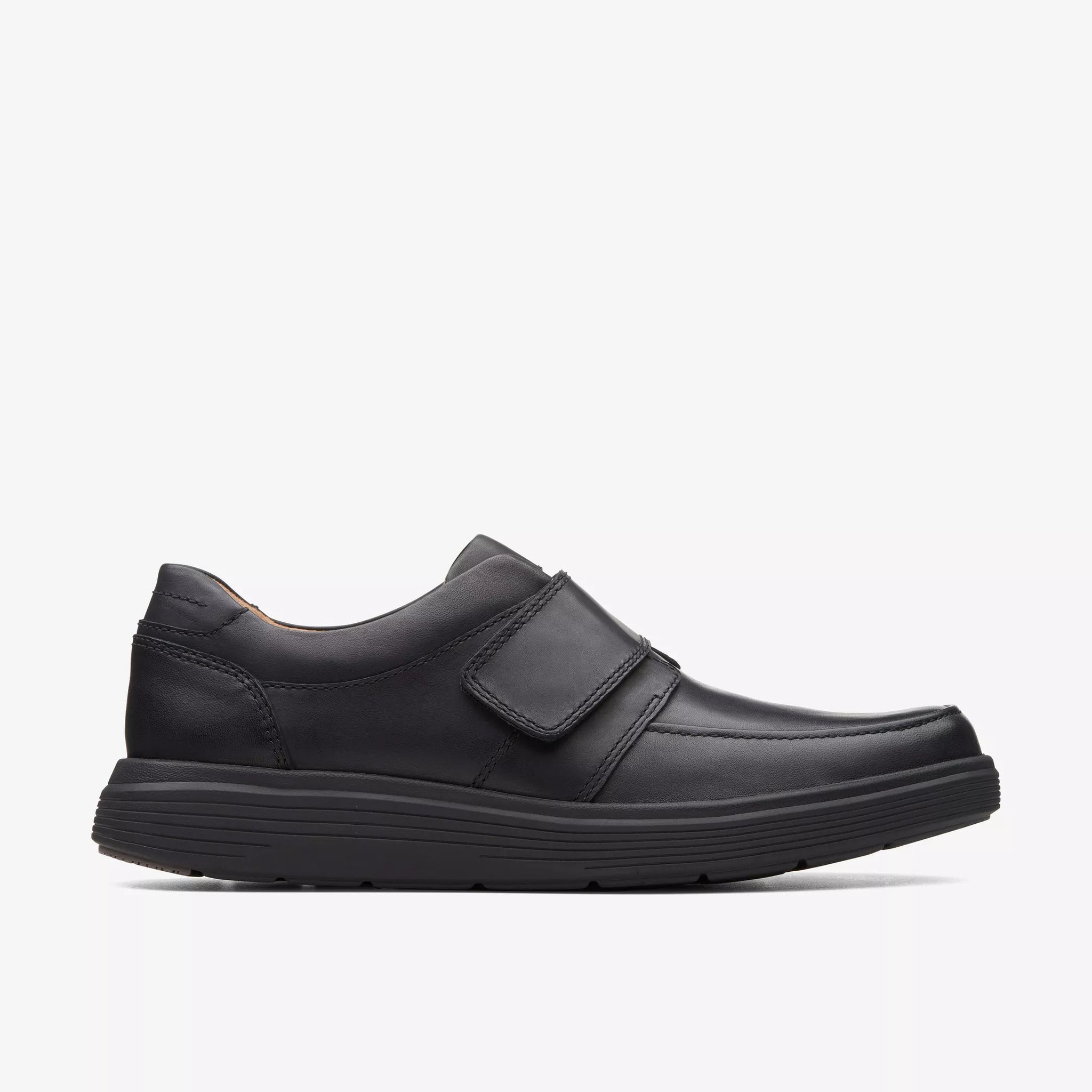 Clarks | Wide H Fit Smooth Leather Velcro Shoes in Black | Un Abode strap