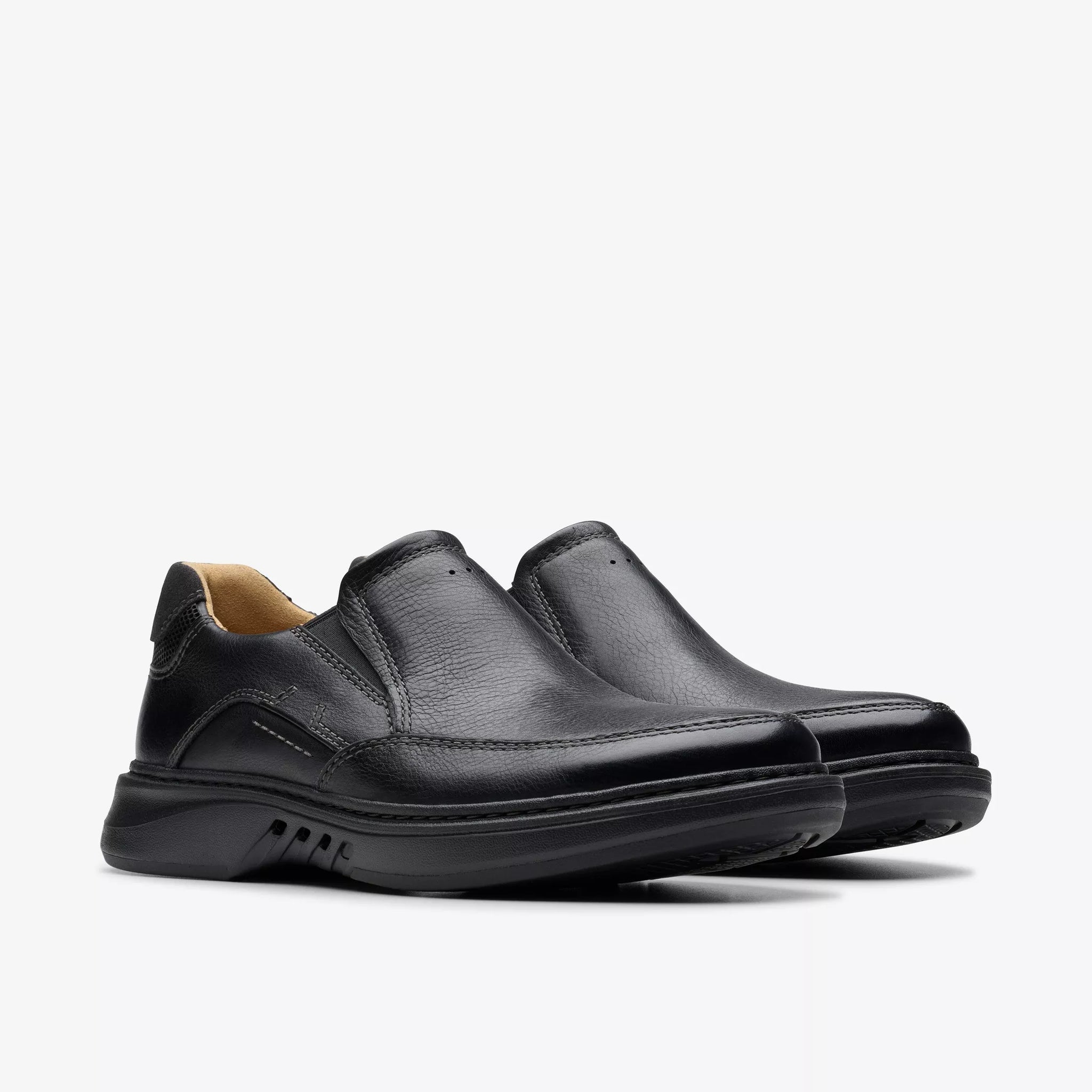 Clarks | Wide H Fit Slip On Lightweight Leather Shoe in Black | Un Briley Step