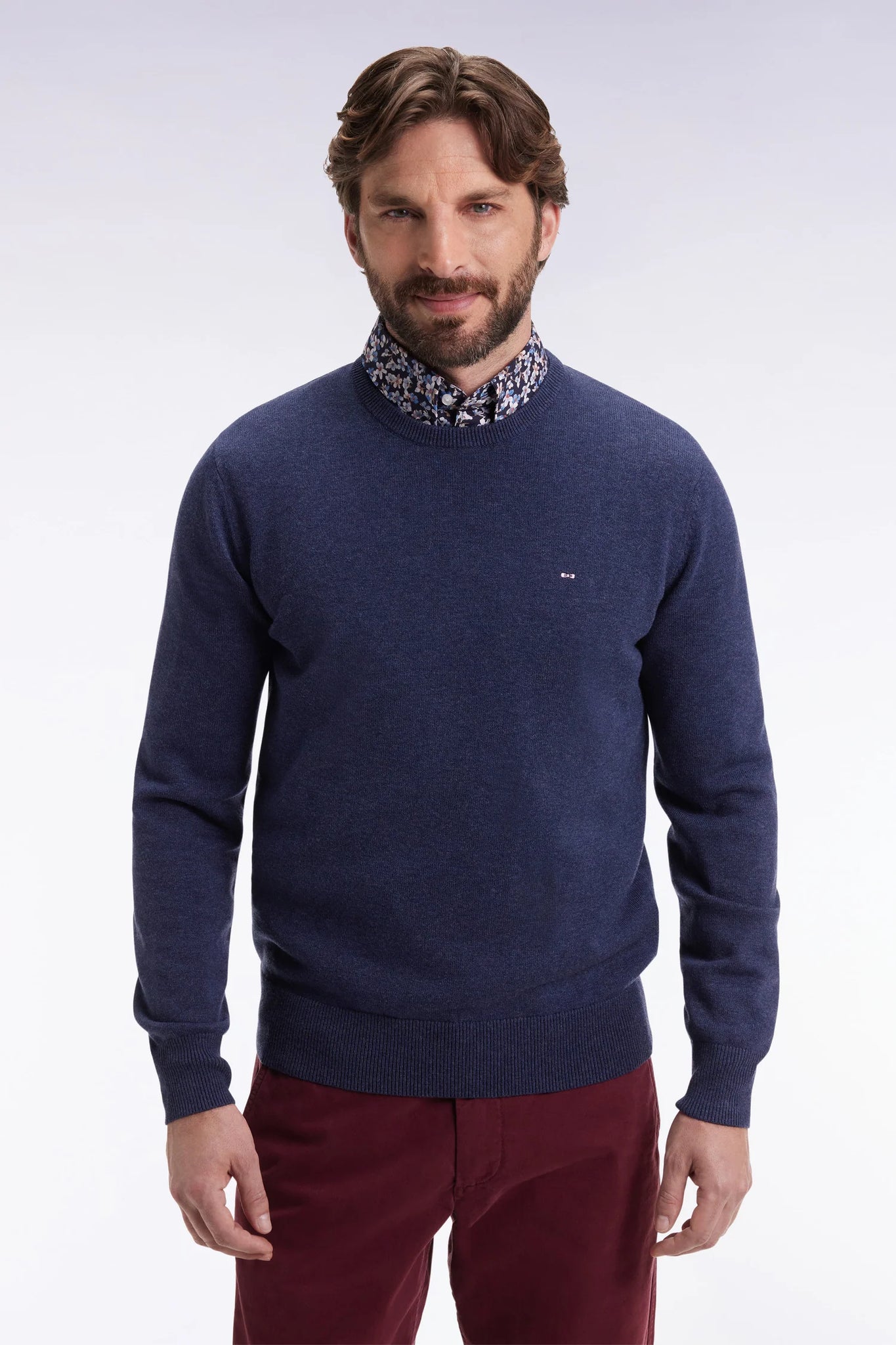 Eden Park | Wool & Cotton Blend Crew Knit in Dark Blue | h25maipu0001 blf21
