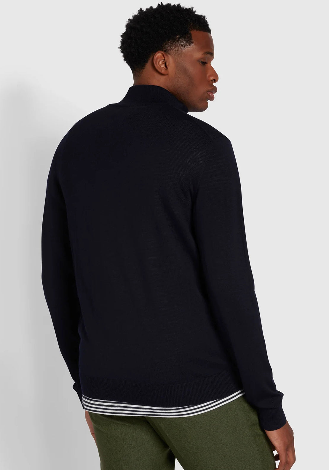 Farah | Redchurch Merino Wool Slim Fit 1/2 Zip Knit in Navy | f4gf9082 412