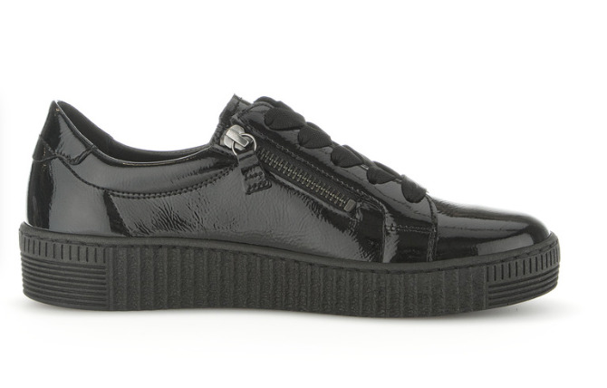 Gabor | Lace & Double Zip Black Patent Shoe | 73.334.97
