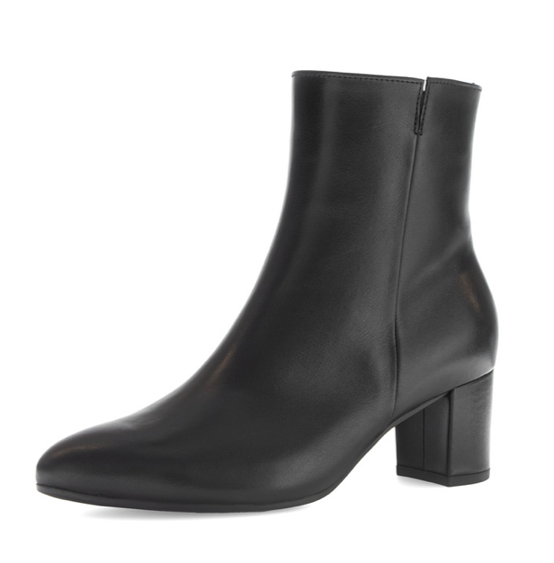 Gabor | 6cm Block Heel Leather Ankle Boots in Black with Zip | 75.701.27