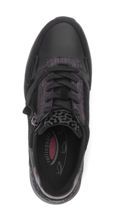 Gabor Rollingsoft | Low Wedge Walking Shoes with Lace & Zip in Black Multi | 76.878.67
