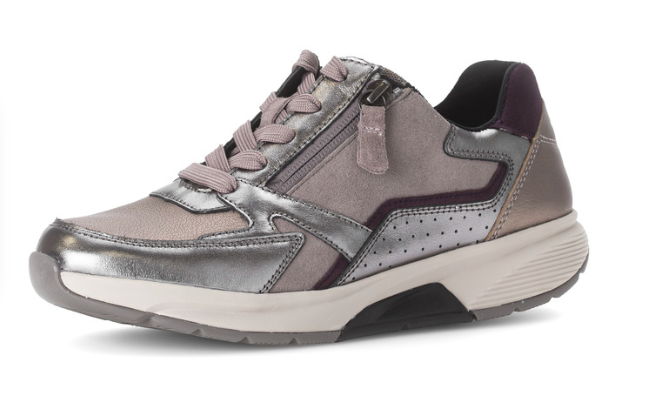 Gabor Rollingsoft | Low Wedge Walking Shoes with Lace & Zip in Rose Multi | 76.878.15
