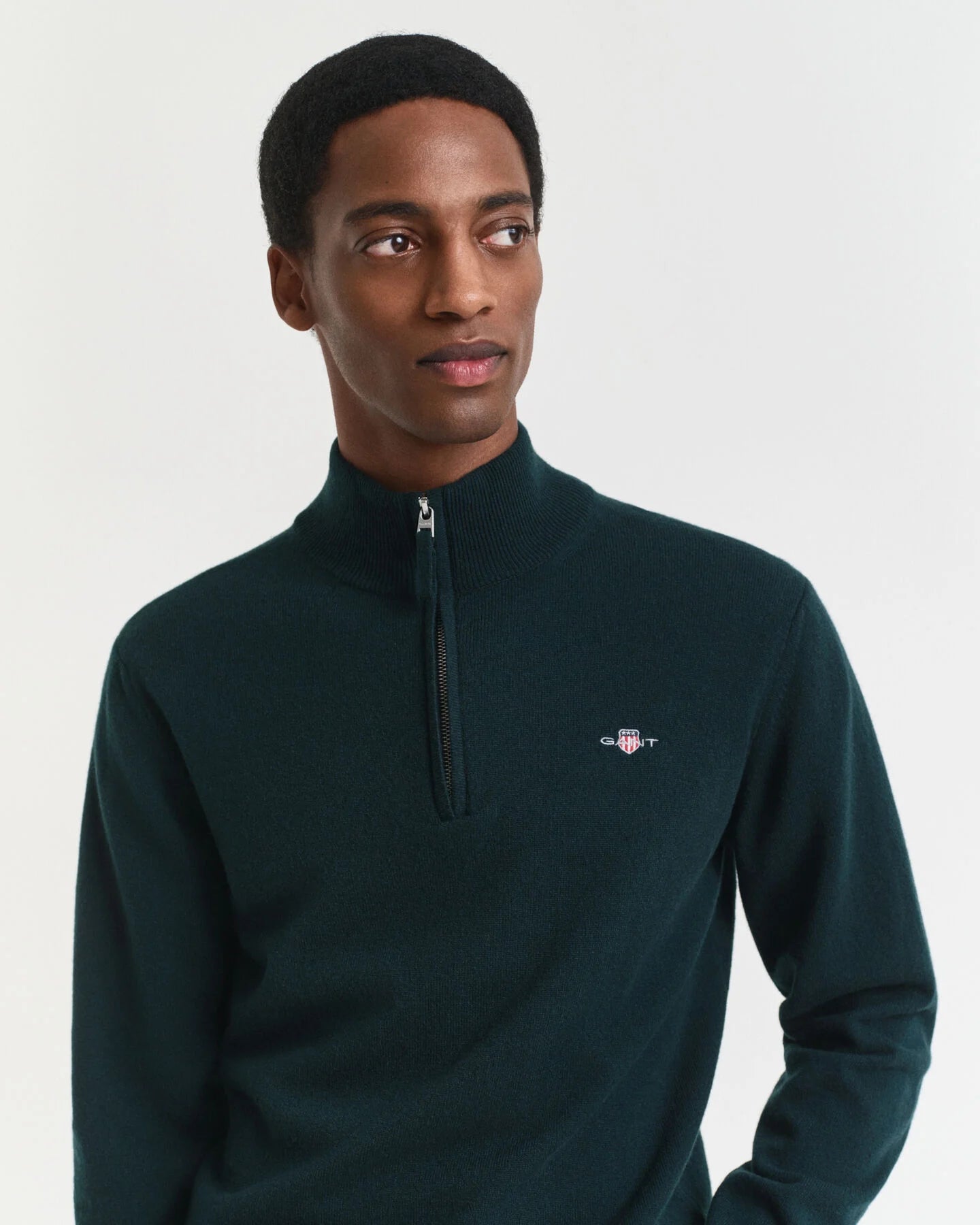 Gant | Superfine Lambwool 1/2 Zip Knit in Tartan Green | 87213 374