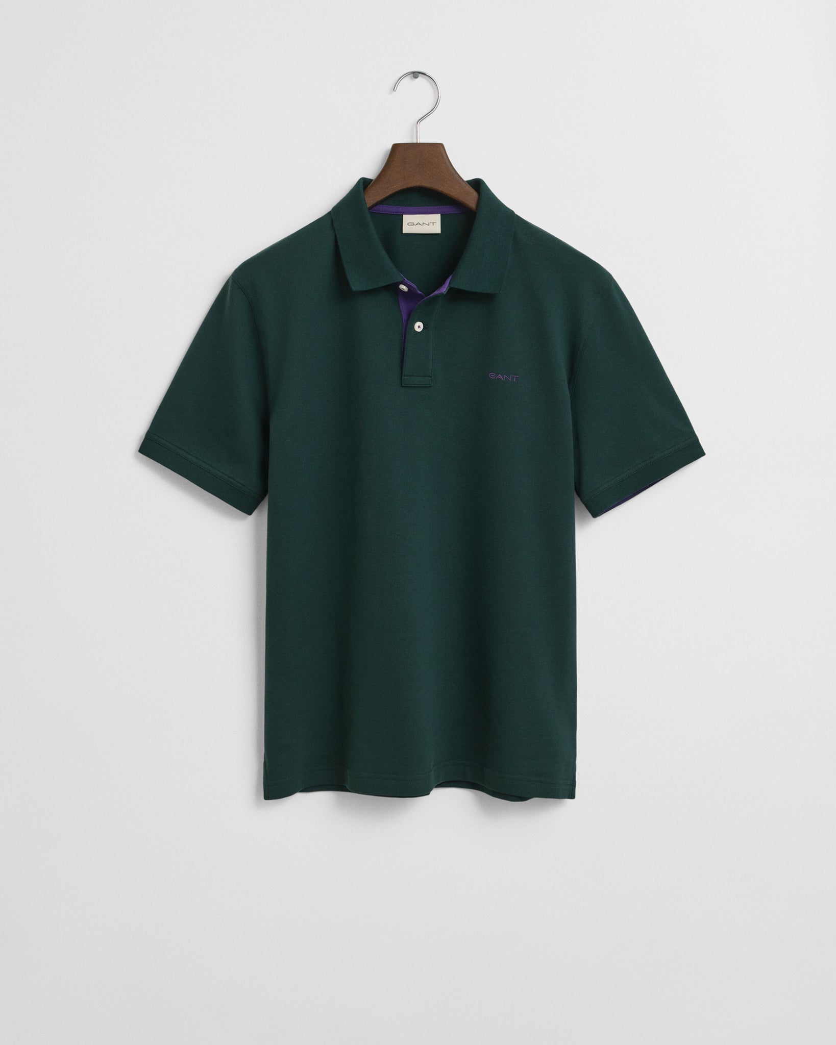 Gant | Contrast Collar Polo Shirt in Tartan Green | 2062026 374