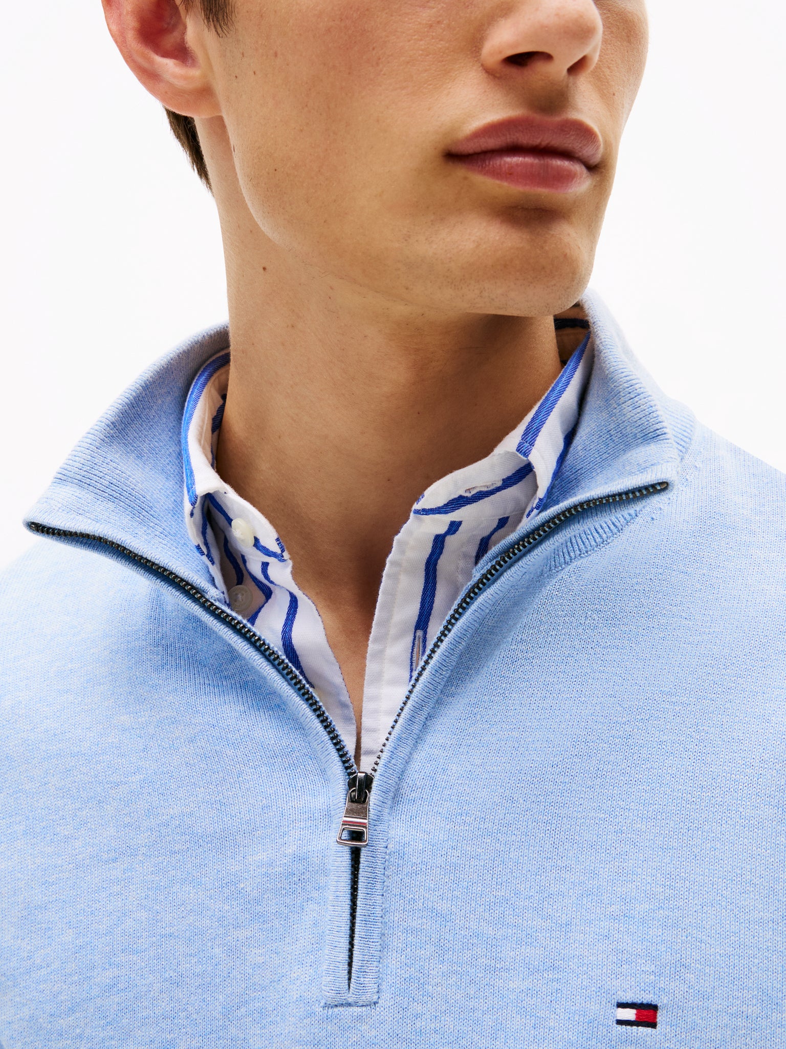 Tommy Hilfiger | Essential Cotton 1/2 Zip Knit in Vessel Blue | mw0mw37331 DVD