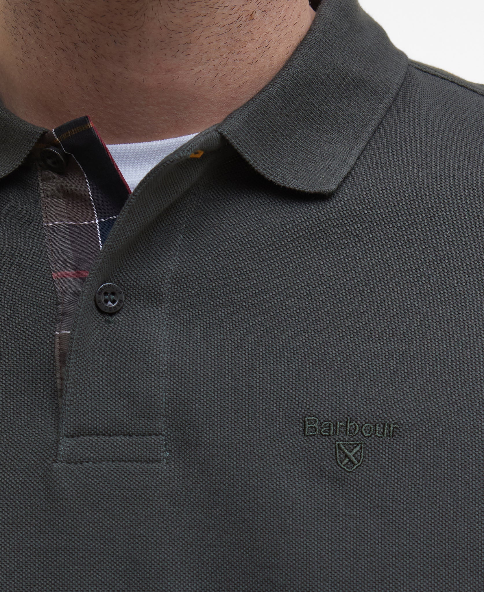 Barbour | Essential Long Sleeve Polo in Forest Green with Tartan Placket | mml0705 gn91