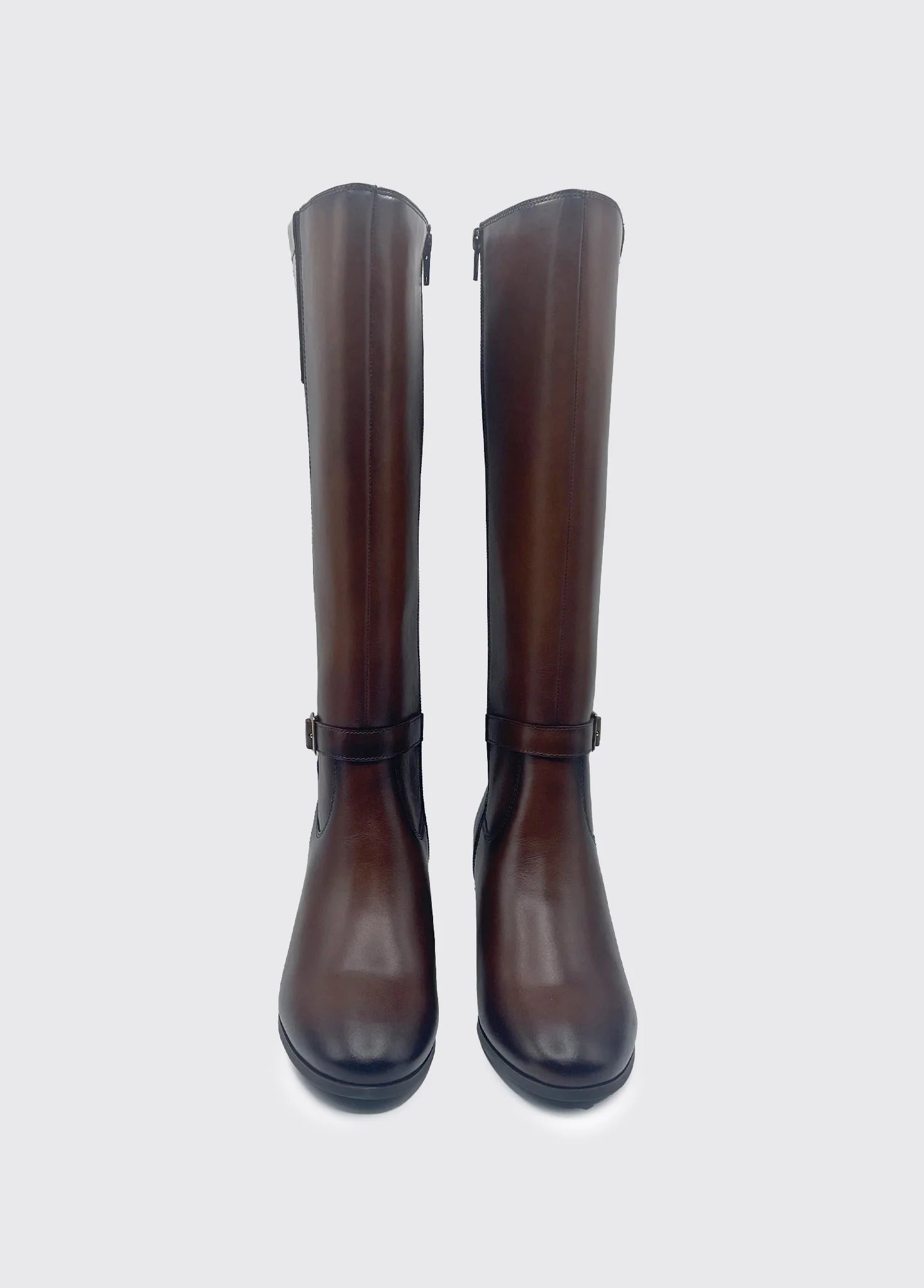 Dubarry | Knee High Block Heel Boots with Side Zip in Chestnut Brown | Calif