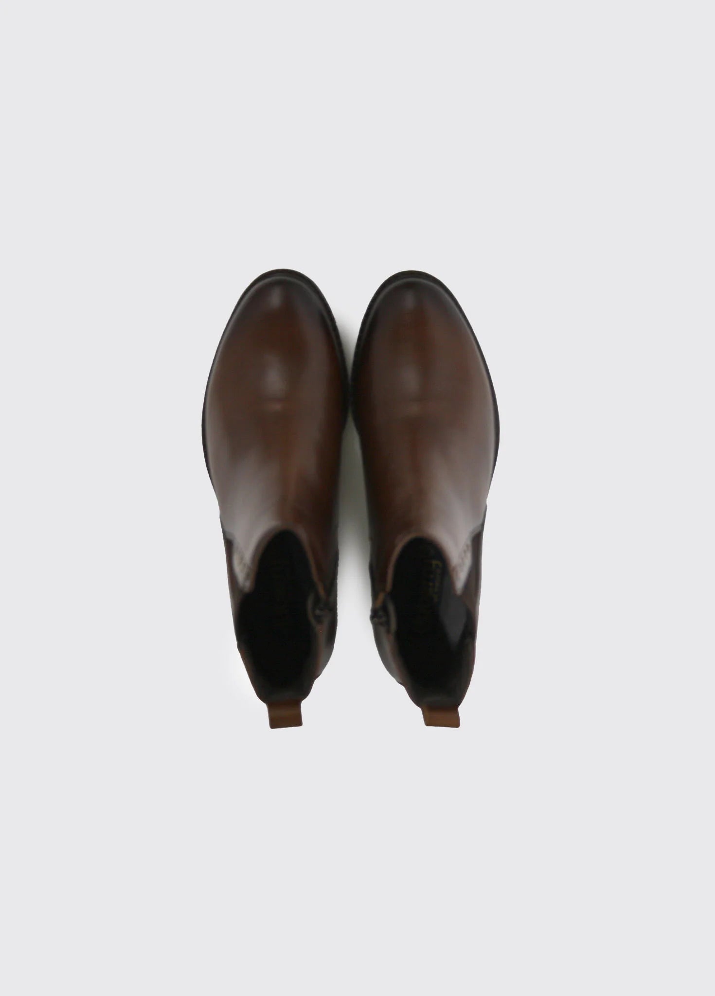 Dubarry | Low Block Heel Ankle Boots with Side Zip in Chestnut Brown with Stud Detailing | Crest