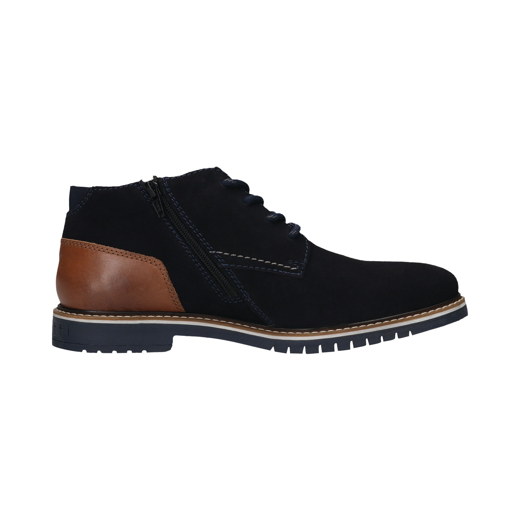 Bugatti | Lace & Zip Nubuck Boots in Navy with Contrast Cognac Heel | 331-8373H-1400 4100