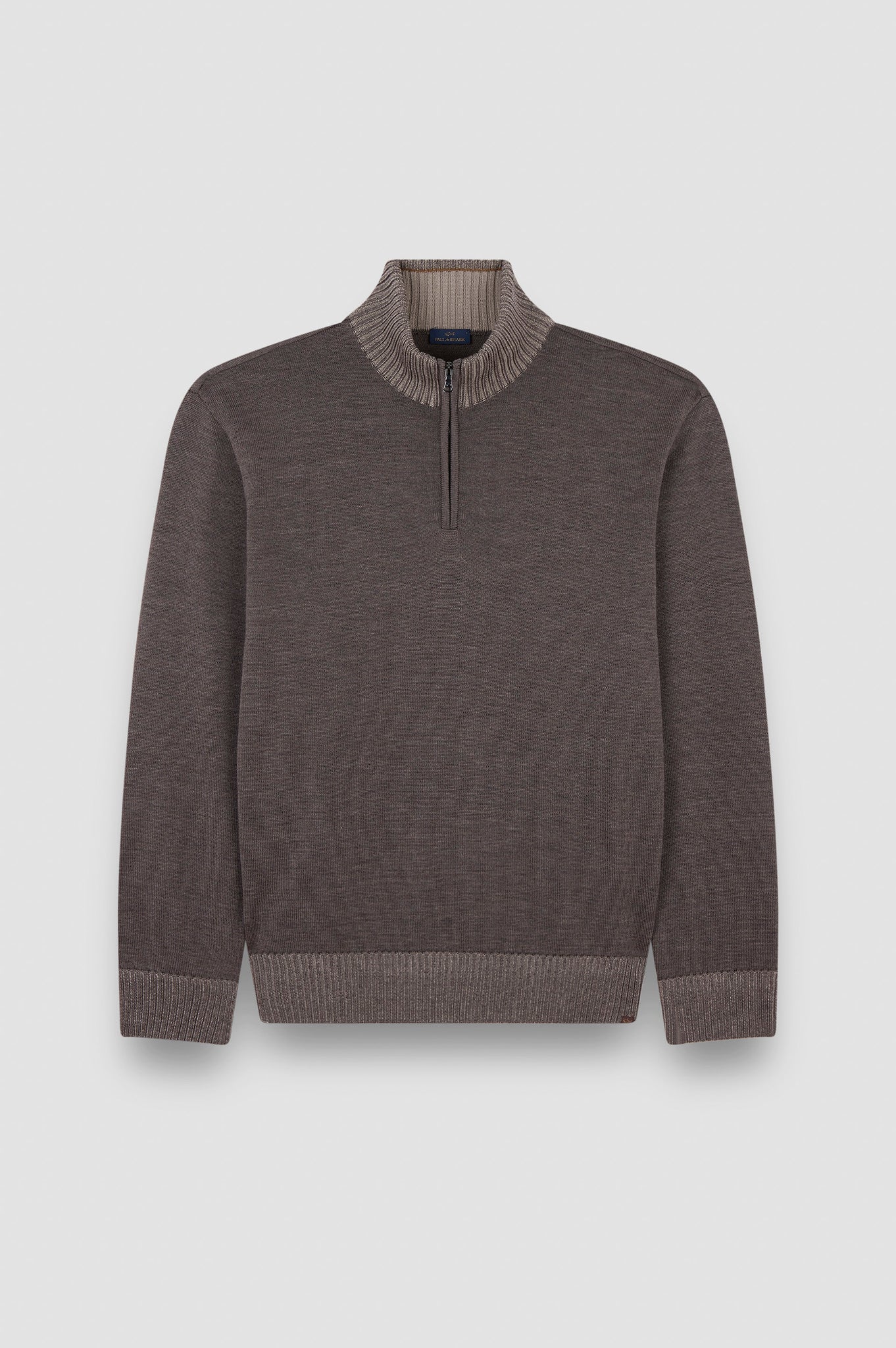 Paul&Shark | Cool Touch Wool 1/2 Zip Knit with Water Repellent Fabric in Falcon Brown | 15311108 365