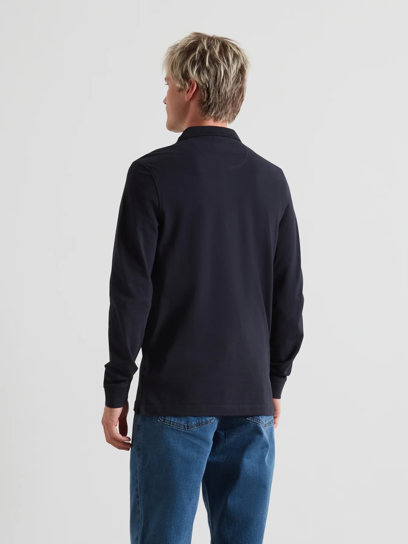 Farah | Blanes Long Sleeve Cotton Polo Shirt in Navy | f4kfd034 412