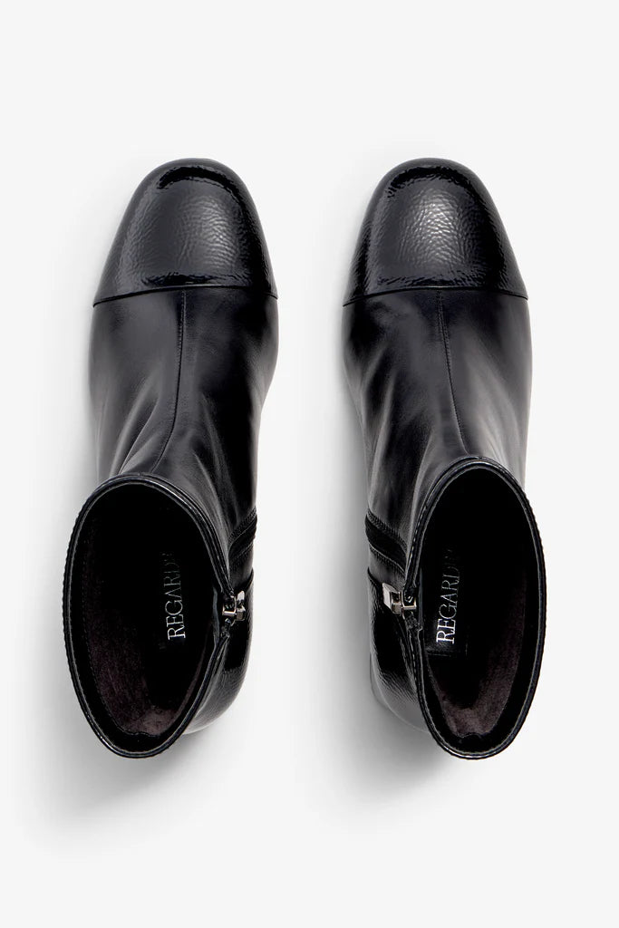 Regarde Le Ciel | 6cm Block Heel Leather Ankle Boots with Zip in Black | Mya 01