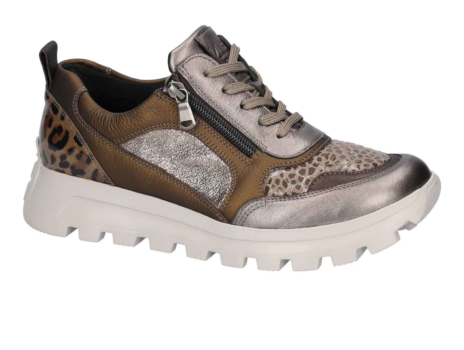 Waldläufer | Wide H Fit Lace & Zip Shoe in Multi Beige Leopard | 993H01-609-736