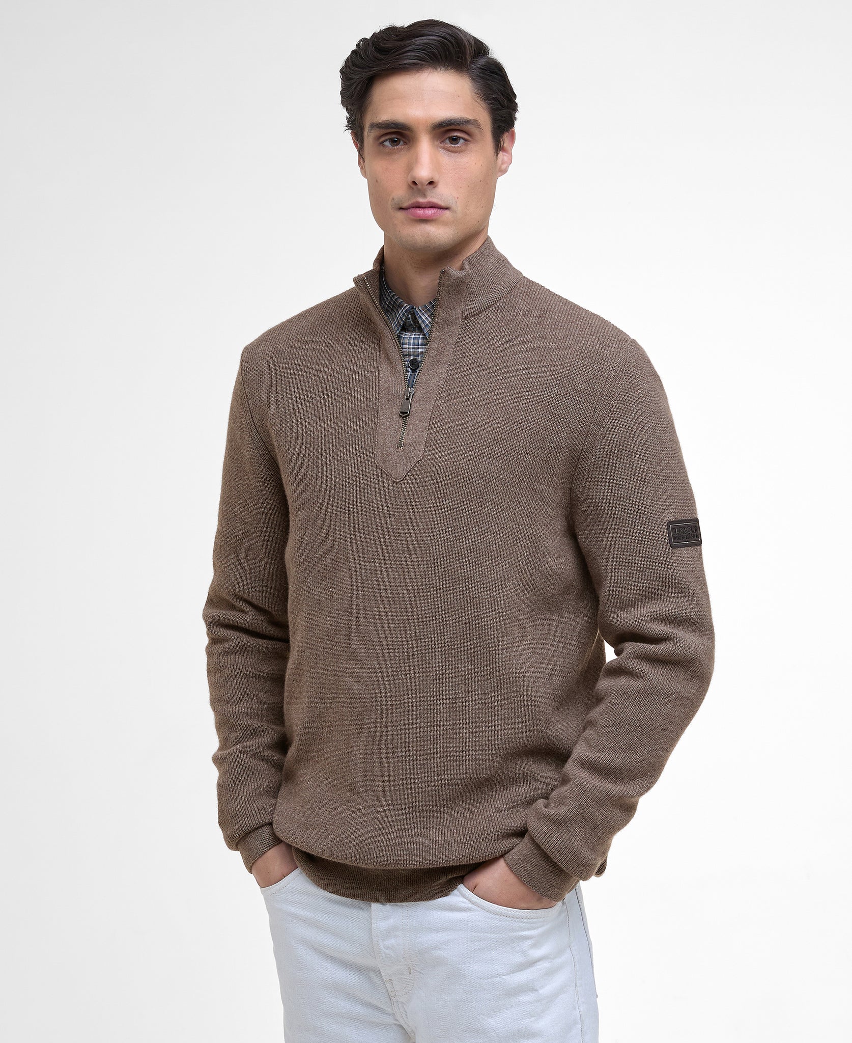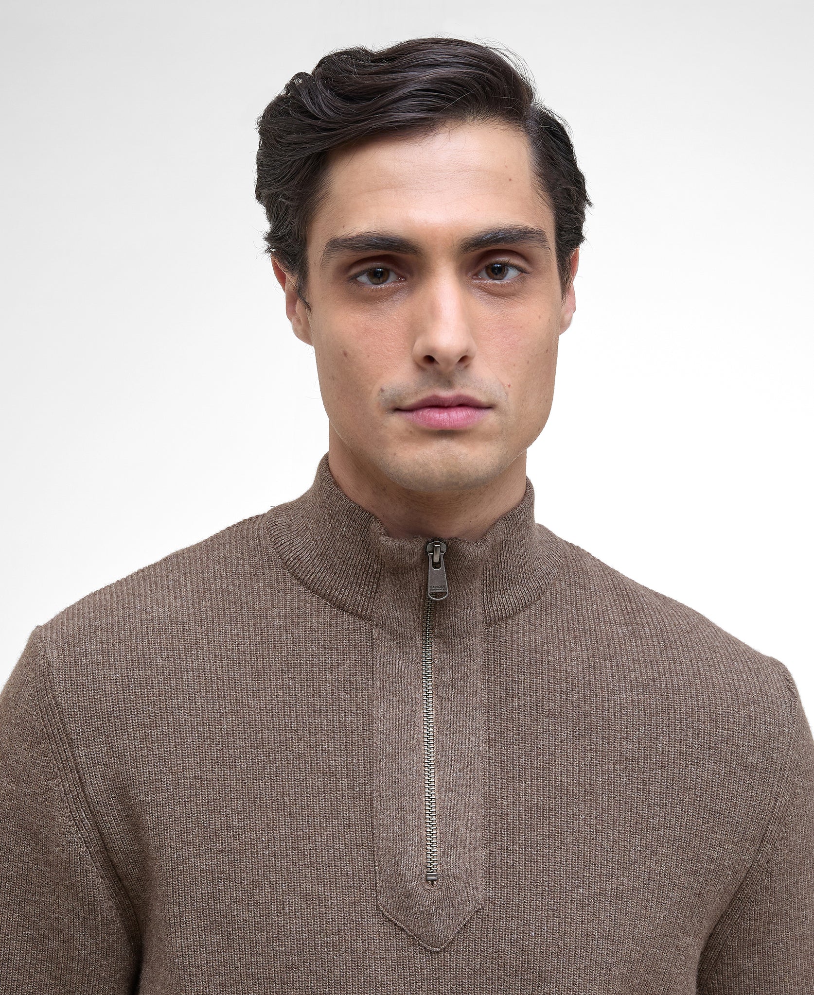 Barbour International | Crawley 1/2 Zip Wool Cotton Knit in Brindle Brown | mkn1612 st59