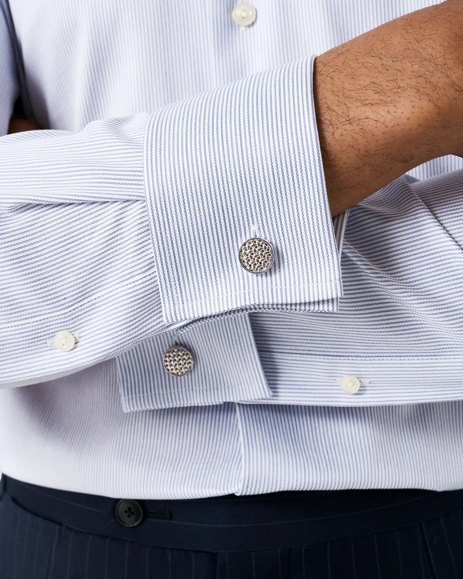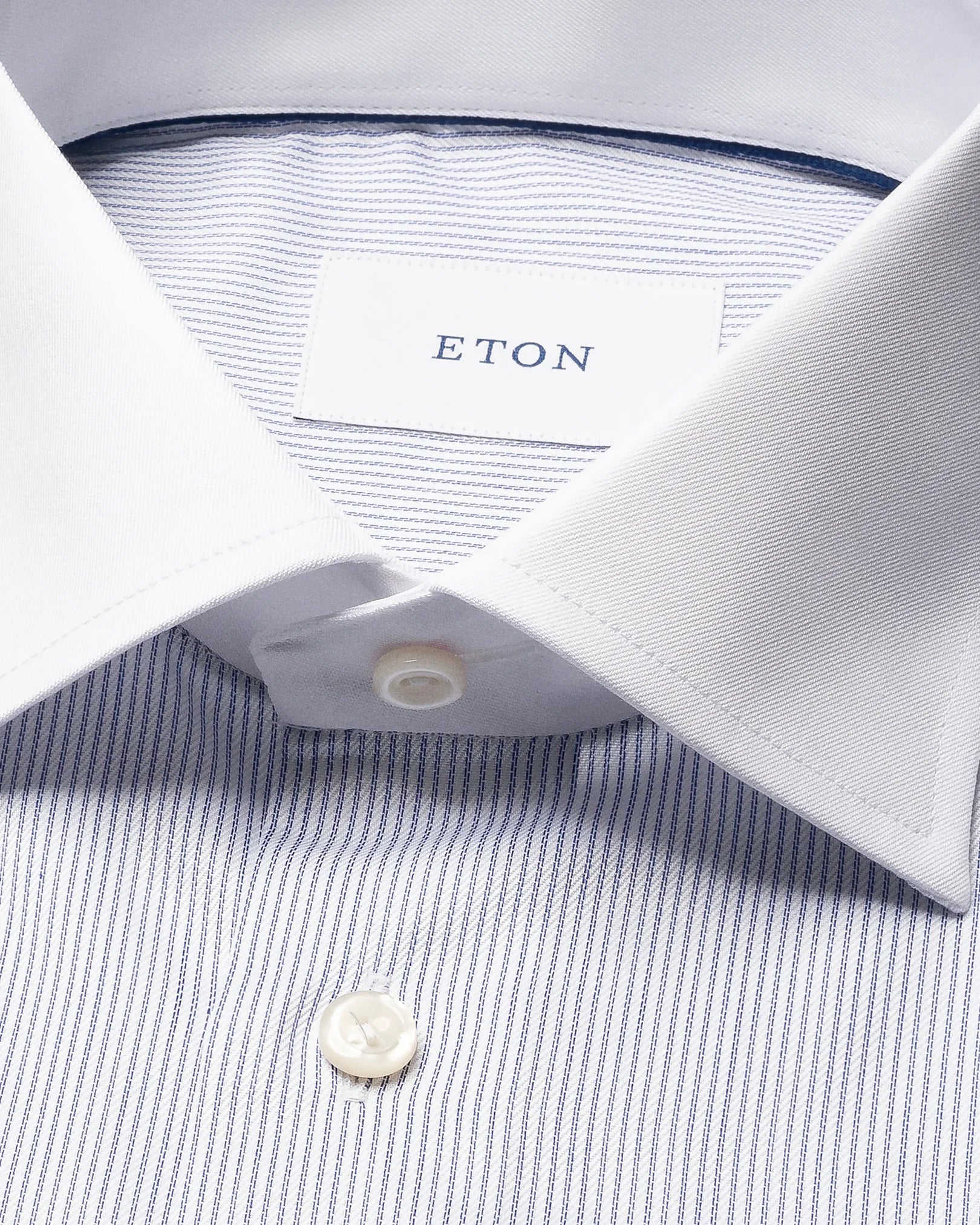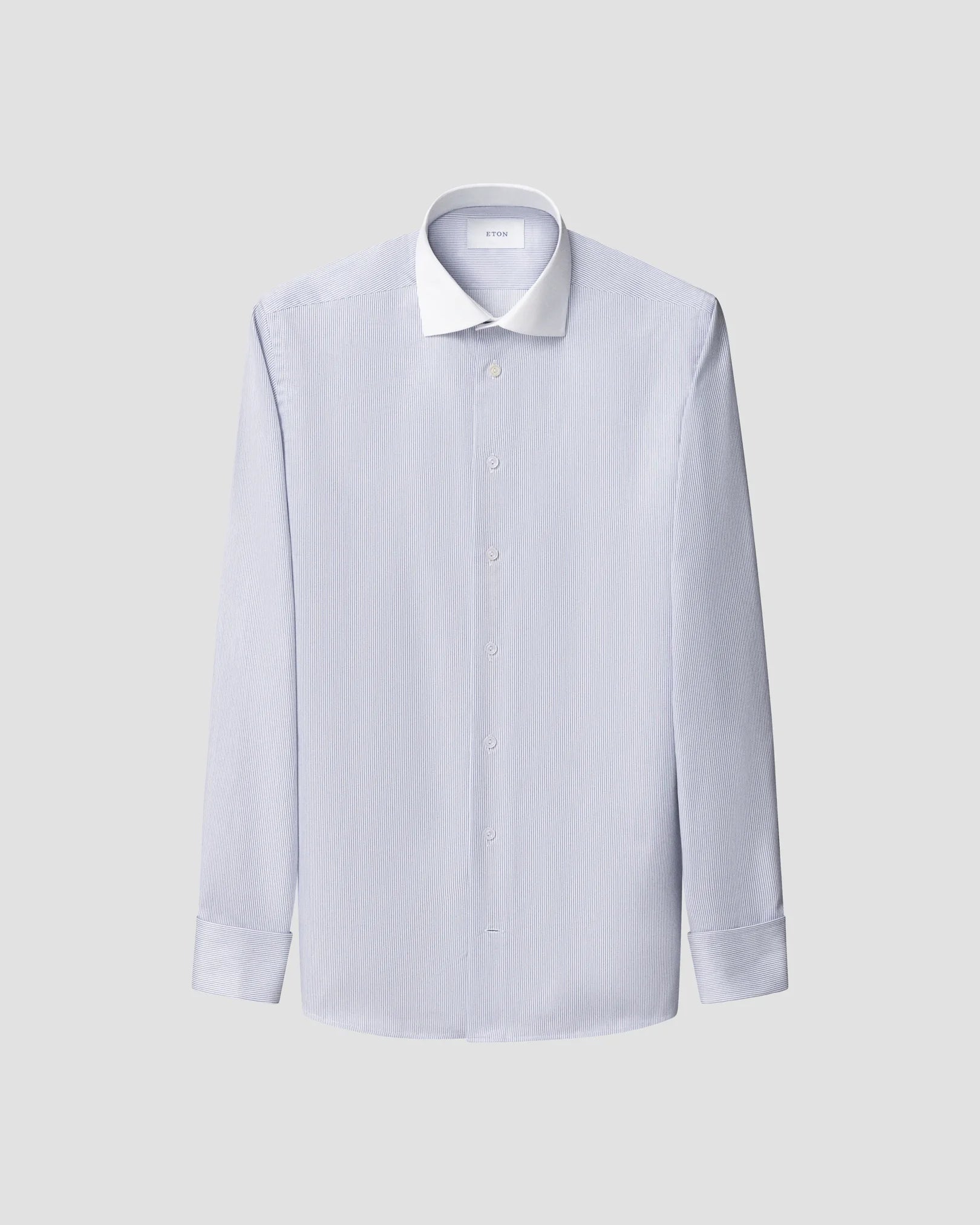 Eton | Fine Blue Stripe Signature Twill Double Cuff Shirt with White Collar in Regular Contemporary Fit | 100014556 27