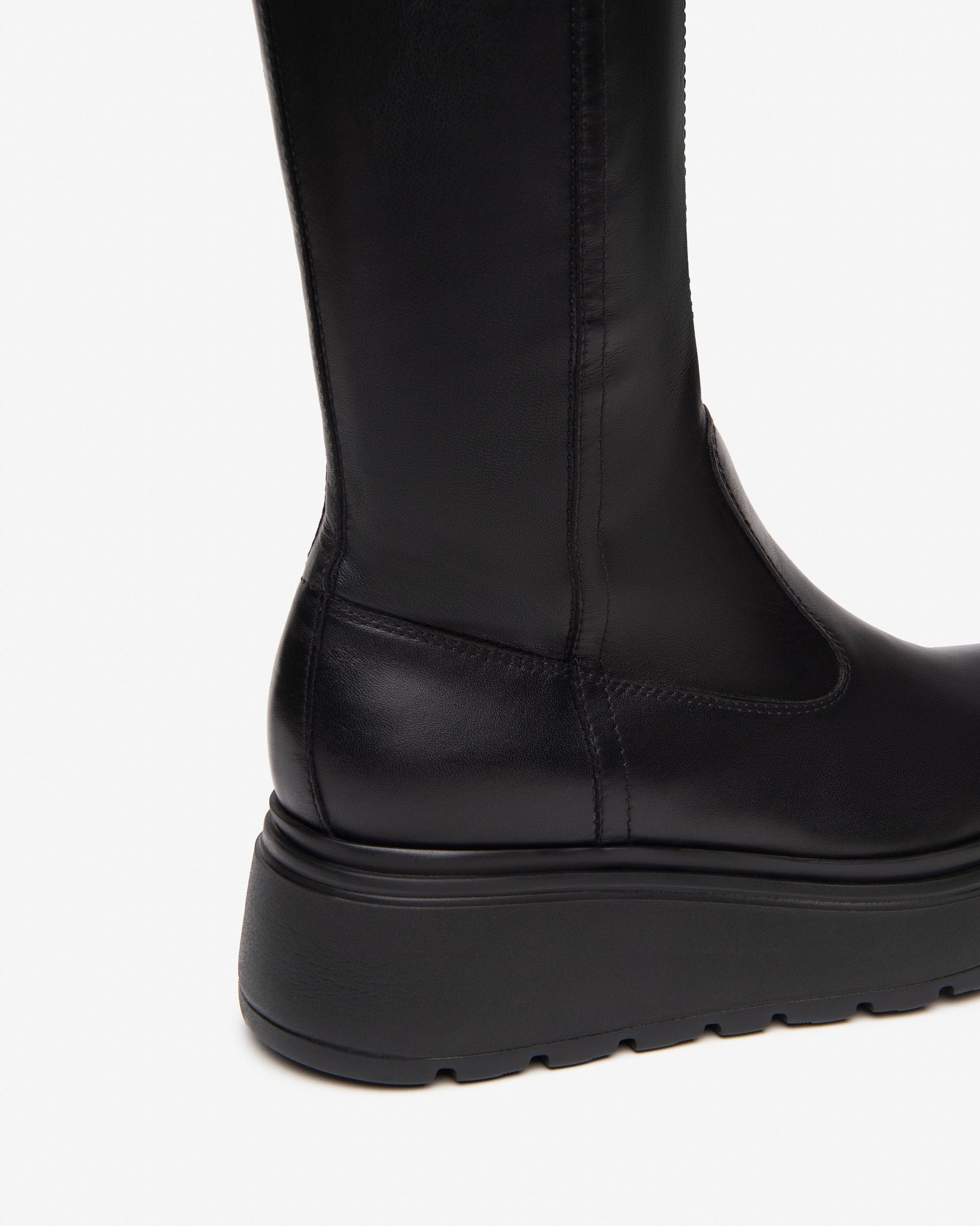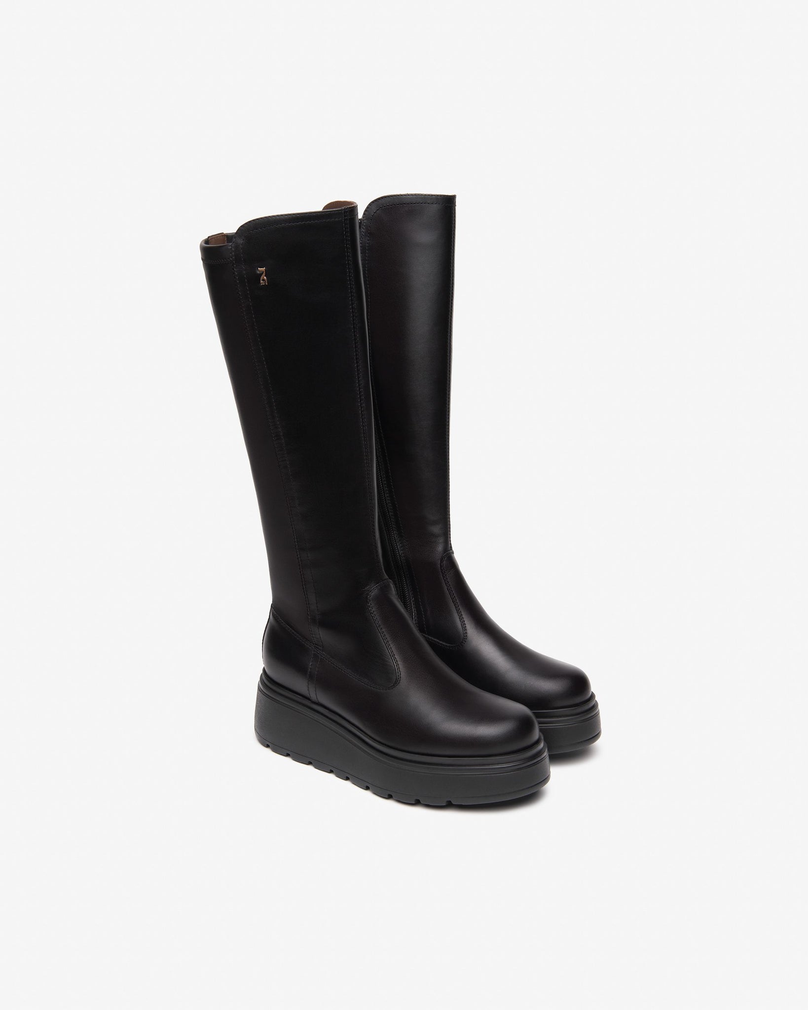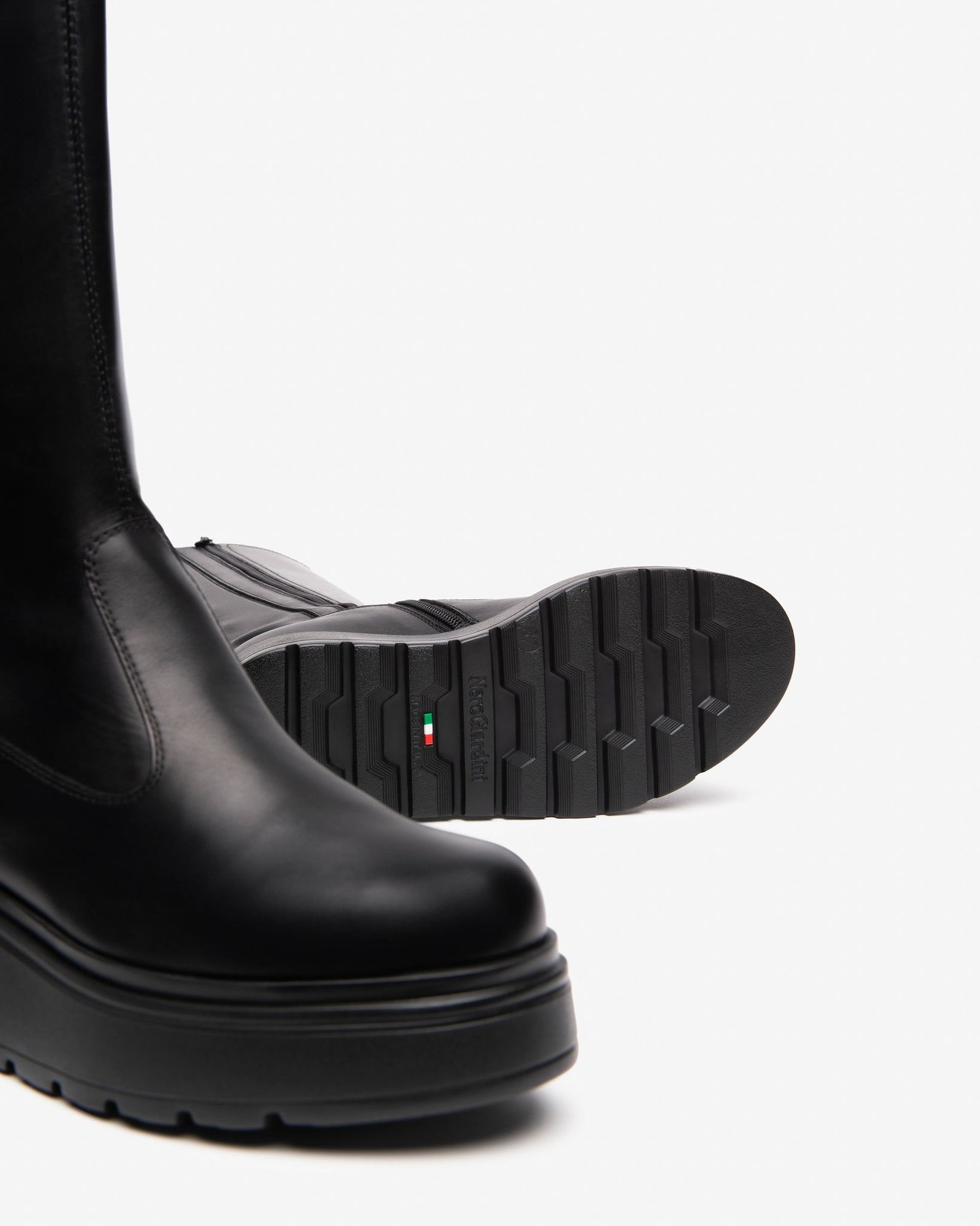 Nero Giardini | 5.5cm Low Wedge Knee High Boots in Black | I514902D 100