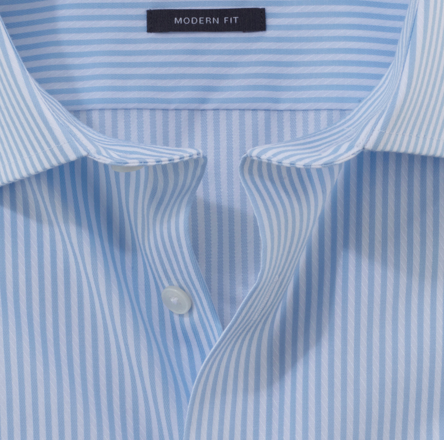 Olymp | Modern Regular Fit Fine Cotton Fabric Blue Bengal Stripe Shirt | 1358 74 11