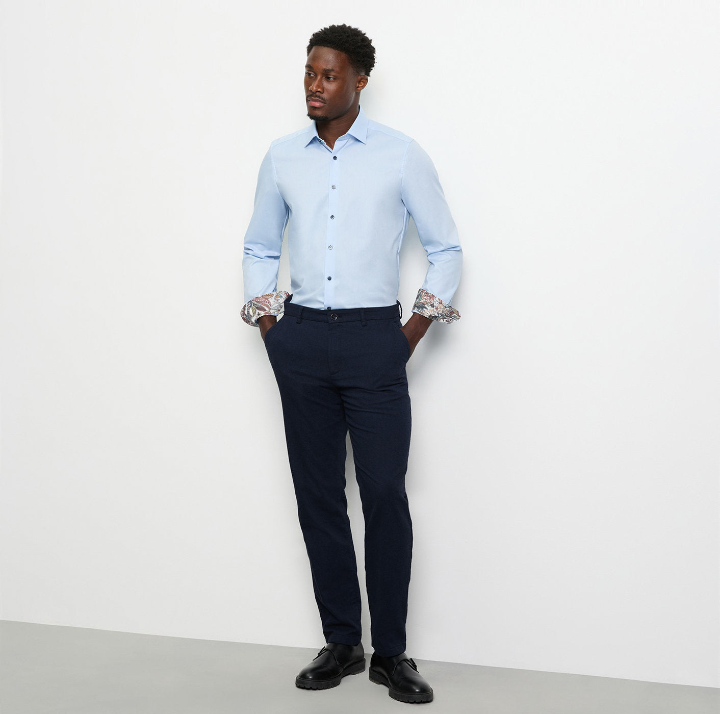 Olymp | Slim Body Fit Shirt in Blue with Navy Buttons & Contrast Floral Trim | 2040 84 11