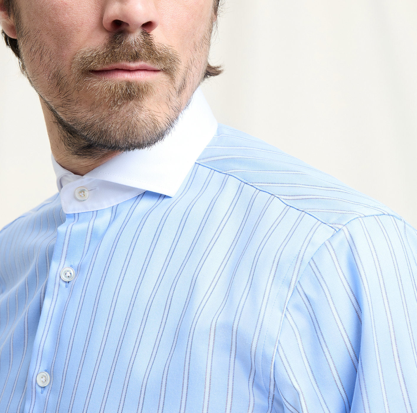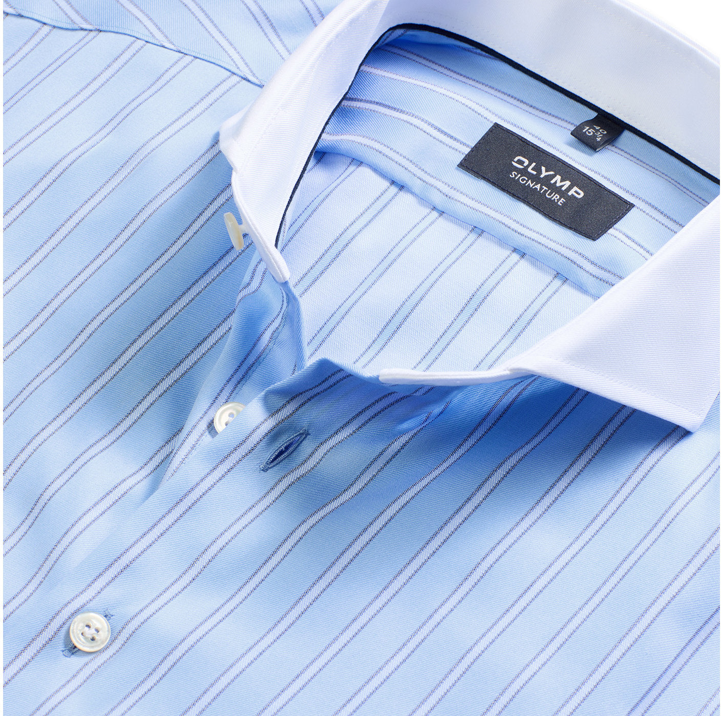 Olymp Signature | Blue Striped Shirt with White Collar in Tailored Fit with Cutaway Collar | 8509 84 11